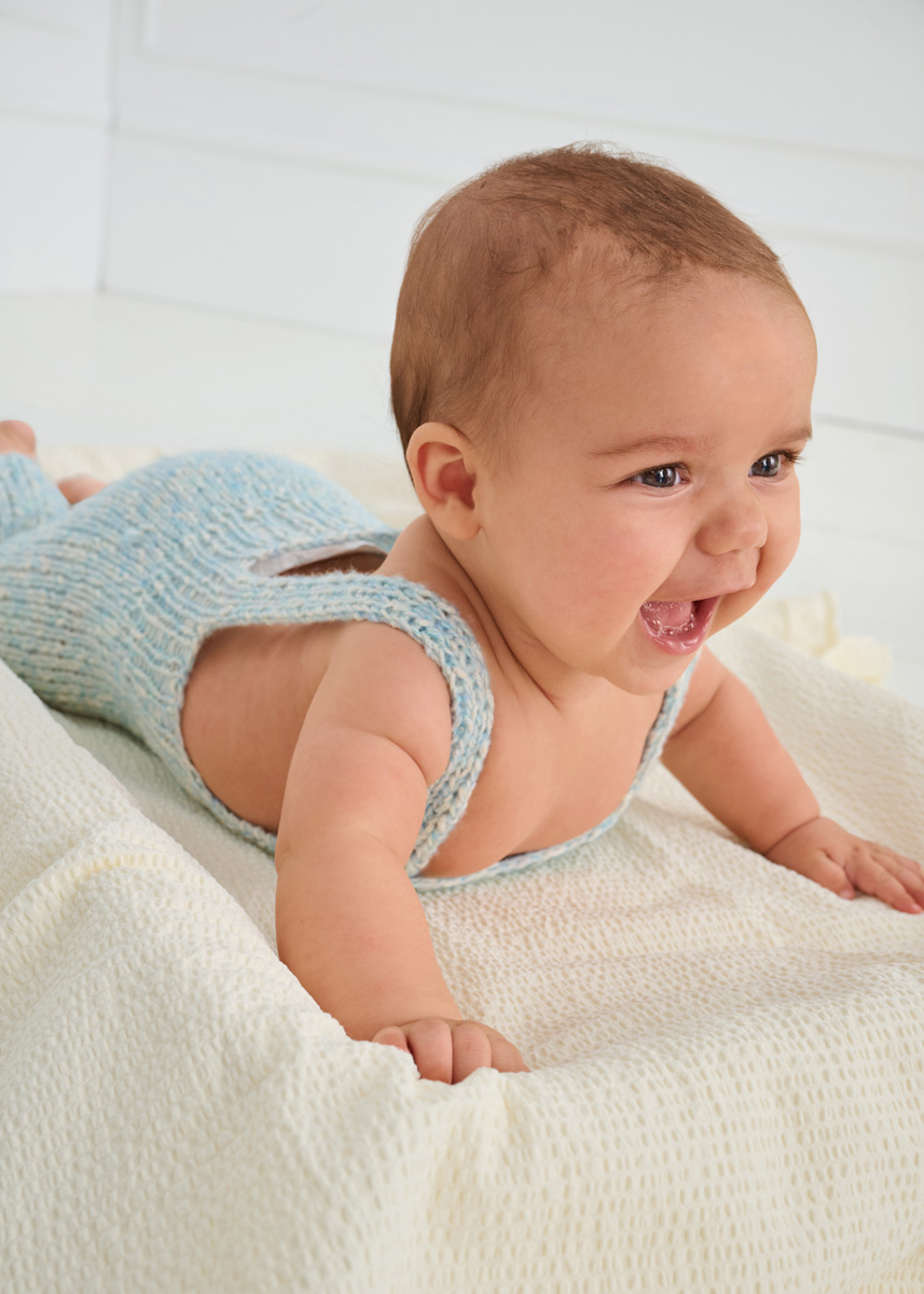 Lana Grossa Bottoni (53% katoen, 24% viscose, 23% scheerwol (merino extrafijn); ca. 125 m/50 g): 100 (100/150) g pastelturkoois/ gebroken wit (kl. 06); rondbreinld 4,5 mm; 2 stekenhouders of veiligheidsspelden; 2 knopen met 18 mm Ø.