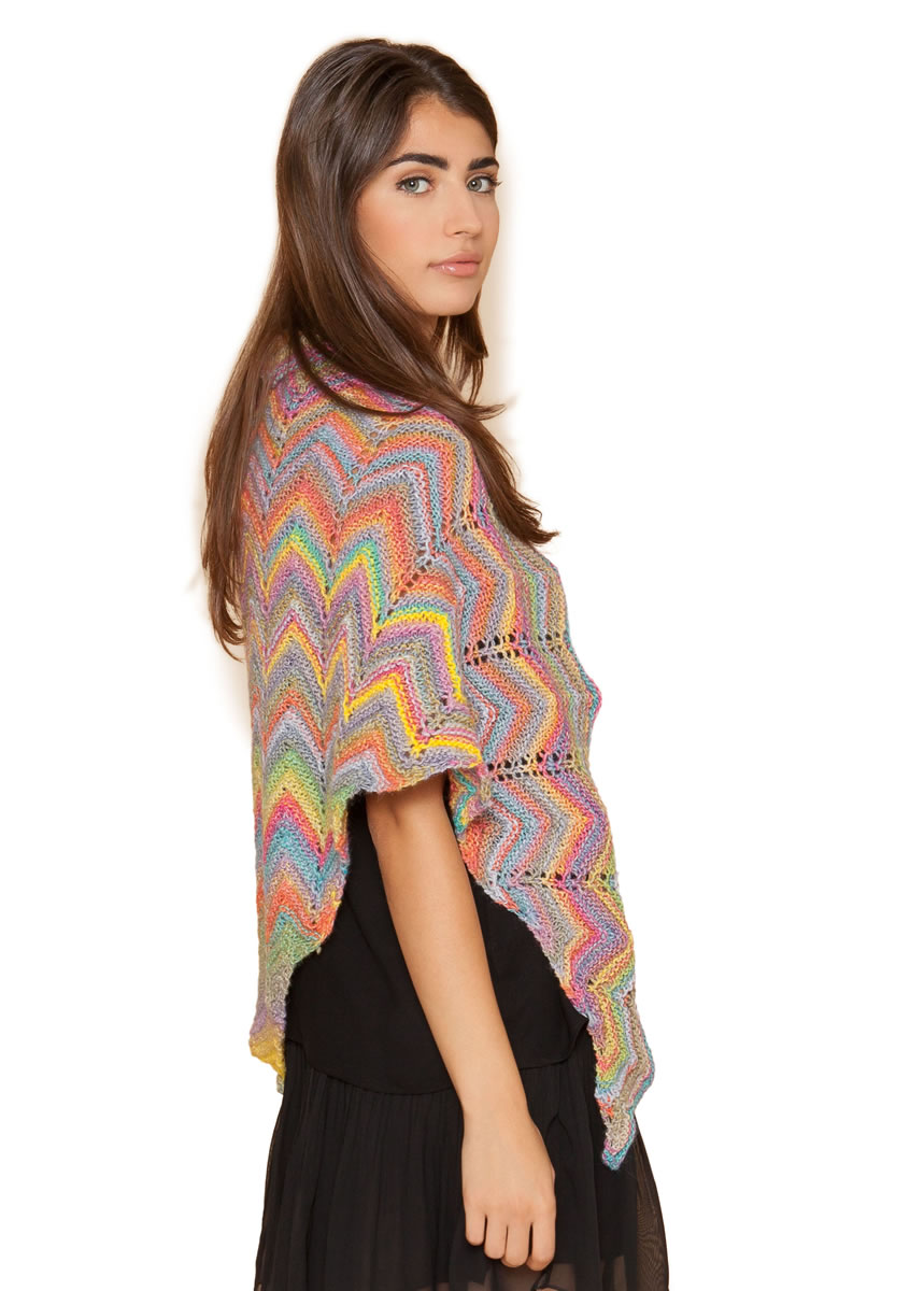 „Cinque Multi“ (60% scheerwol, 40% polyacryl, looplengte 150 m/50 g) van Lana Grossa: schouderdoek 200 g,