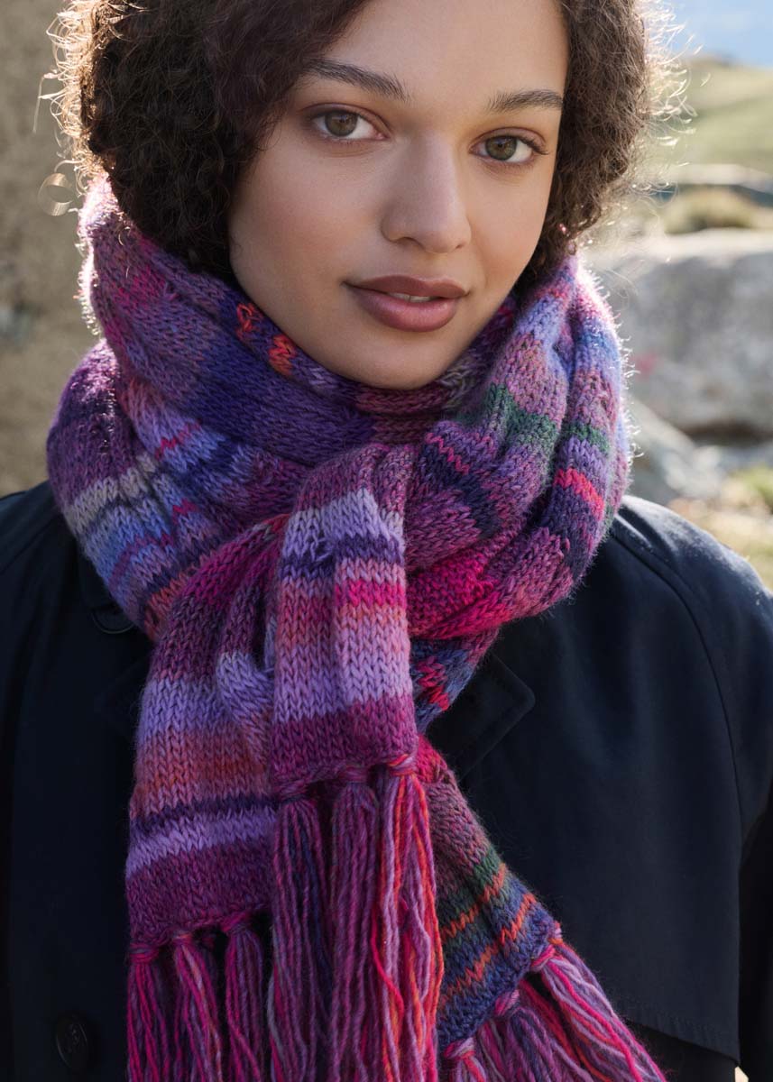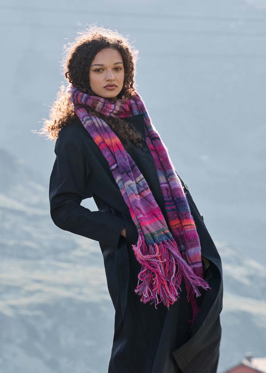 Gomitolo Intenso van Lana Grossa (50% scheerwol, 50% polyacryl, LL=ca 700 m/200 g): 2 klw. = ca 400 g pink/fuchsia/roze/erica/grijslila/orchidee/kobaltblauw (kl. 233). Breinld.nr. 5. Kabelnld. Haaknld.nr. 5.