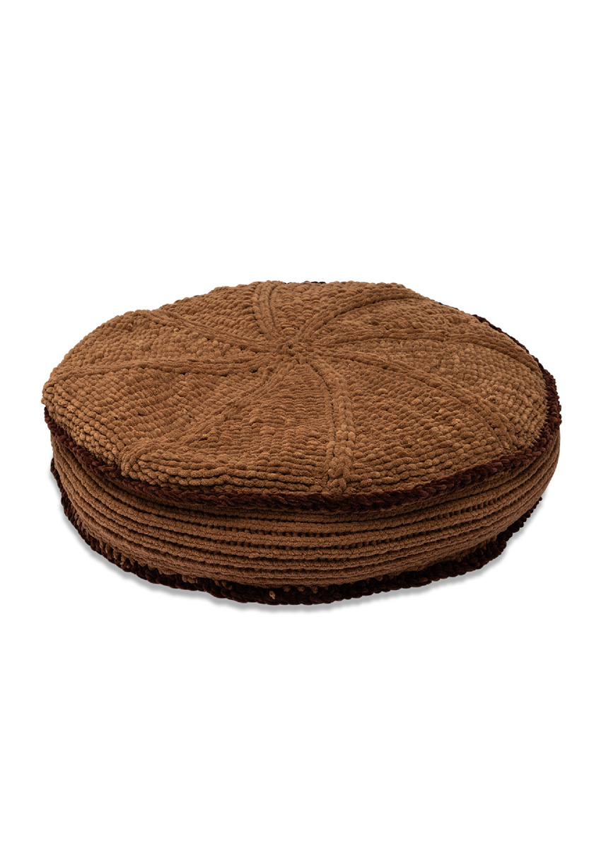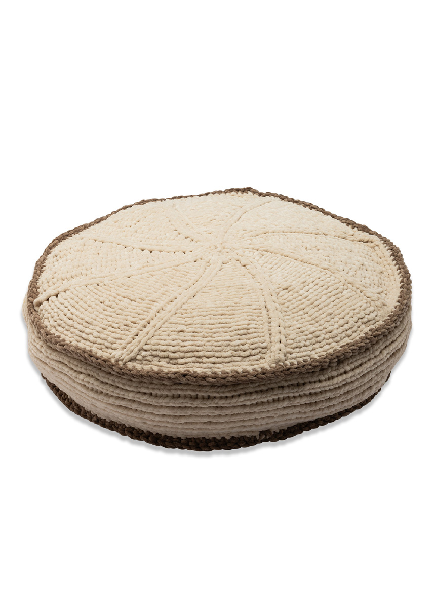 1 haaknld 6 mm, breinld zonder knop 6 mm, 1 rondbreinld 6 mm, 50, 80 en 120 cm lang; 2 wasbare kussenvullingen, ø 50 cm.