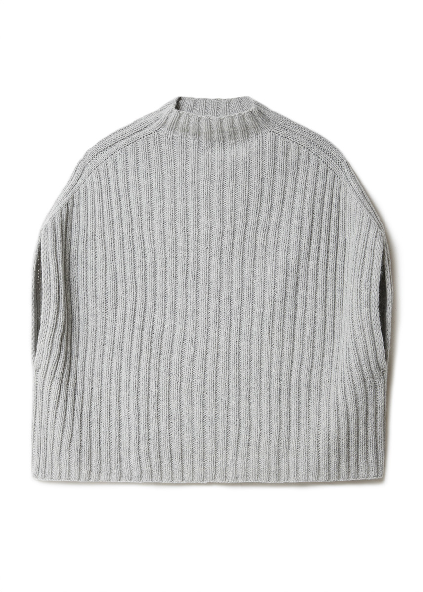 Lana Grossa Cashmere Kiss 70% scheerwol (merino superfine), 30% kasimier, ca.70 m/25 g 350 (350) 375 (375) 375 (400) 400 (400) g lichtgrijs (kl 105) rondbreinaald 3 mm, 4 mm en 4,5 -5 mm, elk 60 cm lang, 80 cm en 100 cm lang (als je volgens de magic loop-methode de steken opzet, heb je alleen de lengte van 100 cm nodig) 5 markeerringen