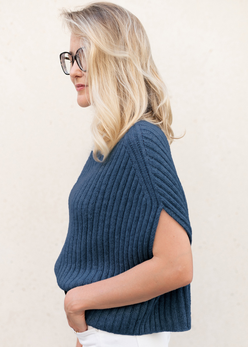 De #LausanneSlipover wordt als top-down-model zonder naden en van boven naar onderen toe gebreid. Eerst worden steken voor de opstaande halsbies opgezet en de bies in toeren in boordpatroon gebreid. Dan worden vier plaatsen voor de meerderingen voor de schouderpassen bij het voorpand aangegeven en worden er in elke toer meerderingen aan beide kanten vóớr en na de schouderpassen uitgevoerd, tot de gewenste wijdte is bereikt. Daarbij worden de meerderingen zo gebreid dat de nieuwe steken in het boordpatroon bij het voor- en achterpand ingevoegd worden. De aangegeven steken van de schouderpassen bliven hetzelfde. Voor de armsgaten worden het voor- en achterpand daarna in heen- en teruggaande naalden verder gebreid, daarbij verdwijnen de steken van de schouderpassen bij het voorpand. Voor de biezen bij de armsgaten worden aan beide kanten steeds dubbele kantsteken gebreid. Het armsgat wordt bij het achterpand een stukje langer gebreid dan bi het voorpand om het verschilin hoogte van de voorste halsrand op te vangen, hierdoor valt de hele pas naar voren toe zodat de voorste halsrand ontstaat. Daarna worden de steken weer in het rond gesloten, daarbij wordt bij de dubbele kantsteken van de armsgaten steken geminderd zodat de steken in het boordpatroon gebreid kunnen worden en weer alle steken in toeren gebreid kunnen worden. Voor de zoomboord wordt met een dunnere naald gebreid.