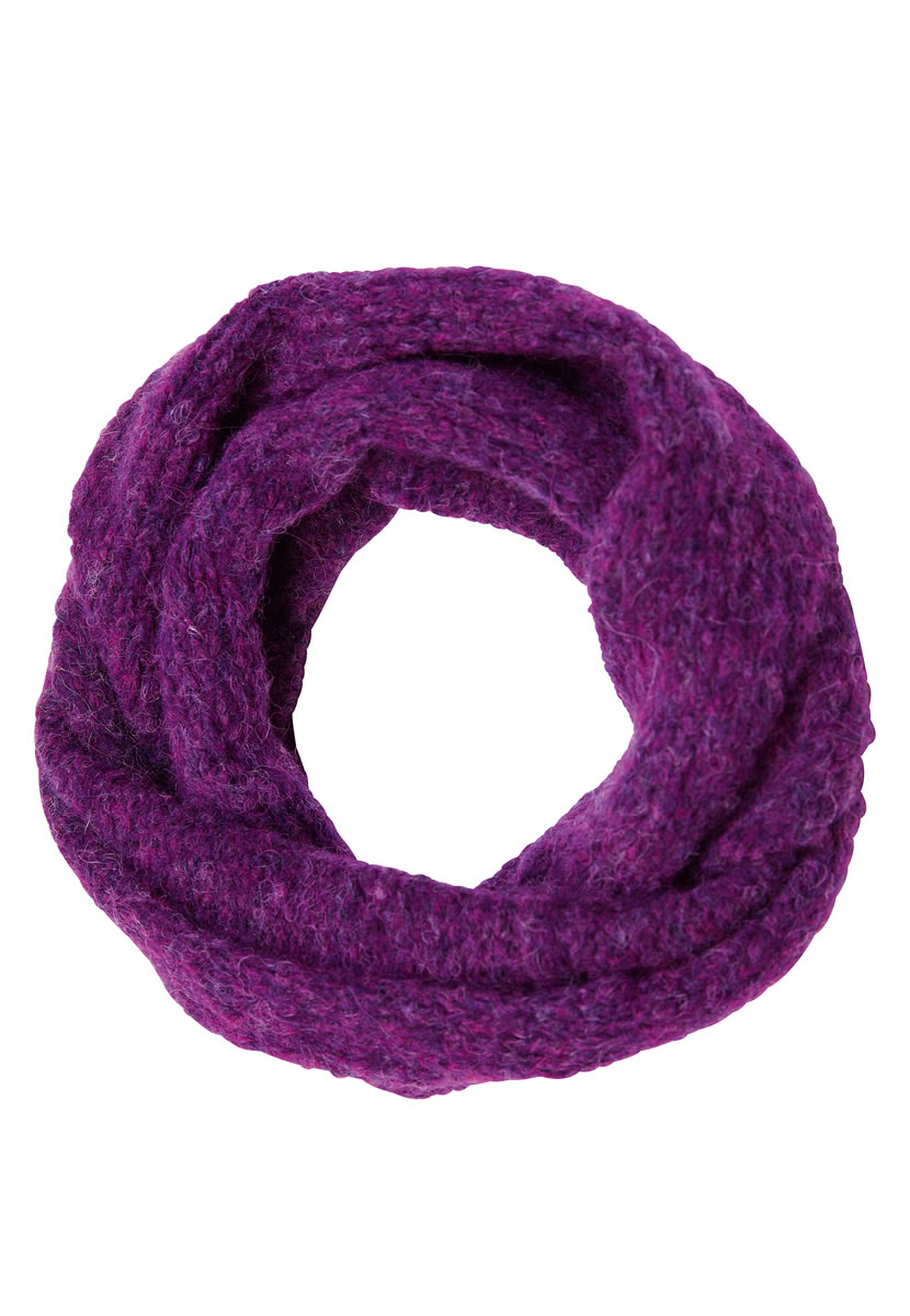 Lana Grossa Garzato Fleece (70% alpaca, 30% polyamide, ca. 225 m/50 g) 50 g paars/zwart (kleur 7); breinld nr 4,5 en 5,5, een 40 cm lange rondbreinld nr 4,5.