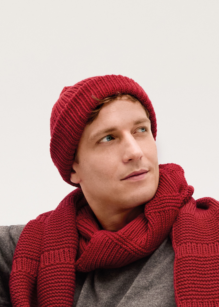 Lana Grossa ‘Cool Wool Big’ (100% scheerwol (merino extrafijn), ca. 120 m/50 g): 100 g donkerrood (kl 924); breinld zonder knop 4 mm; markeerringen.