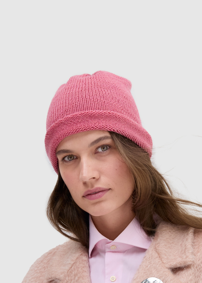 Lana Grossa ‘Cool Wool Big Mélange’ (100% scheerwol (merino extrafijn), ca. 120 m/50 g): 100 g roze gemêleerd (kl 1631); breinld zonder knop 4 mm.