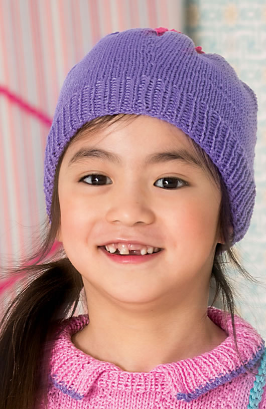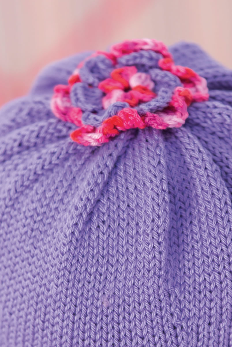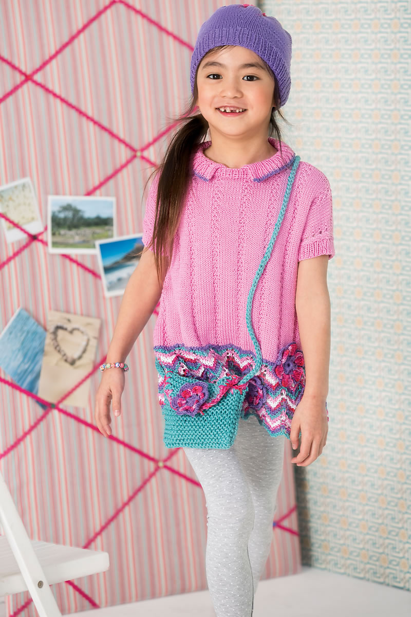 Meisjes houden van roze, van bloemen én van tasjes. Dus mama’s: brei dit truije met zigzagrand en lief kraagje en het bijpassende tasje met bloem. Voor de muts kozen wij de paarse kleur van de kraag.