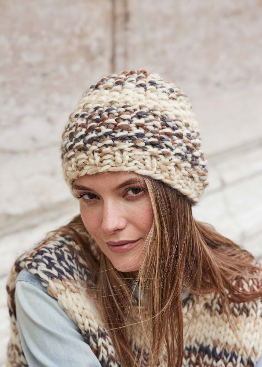 Lana Grossa Dolce (100% scheerwol (merino basolan), ca. 50 m/100 g), 100 g gebroken wit/beige/noga/ grijs (kl 1); 5 breinld zonder knop 12 mm.