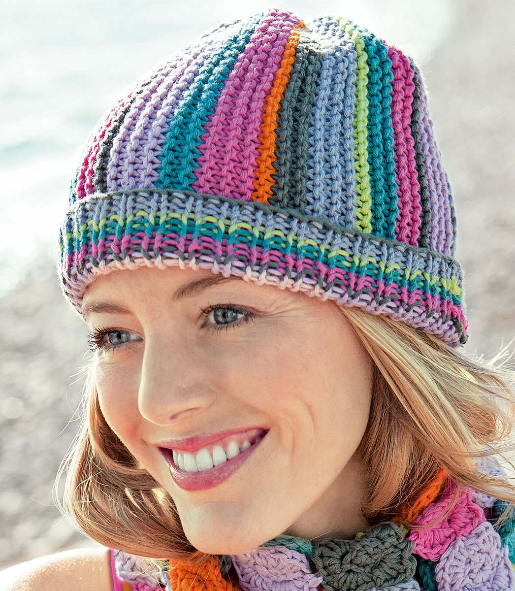 MUTS + SJAAL Een geniaal duo, kakelbont gestreept en met vele bonte bloemen. Een opkikker voor elke beachlook. (Omtrek van het hoofd ca. 46 - 48 cm)