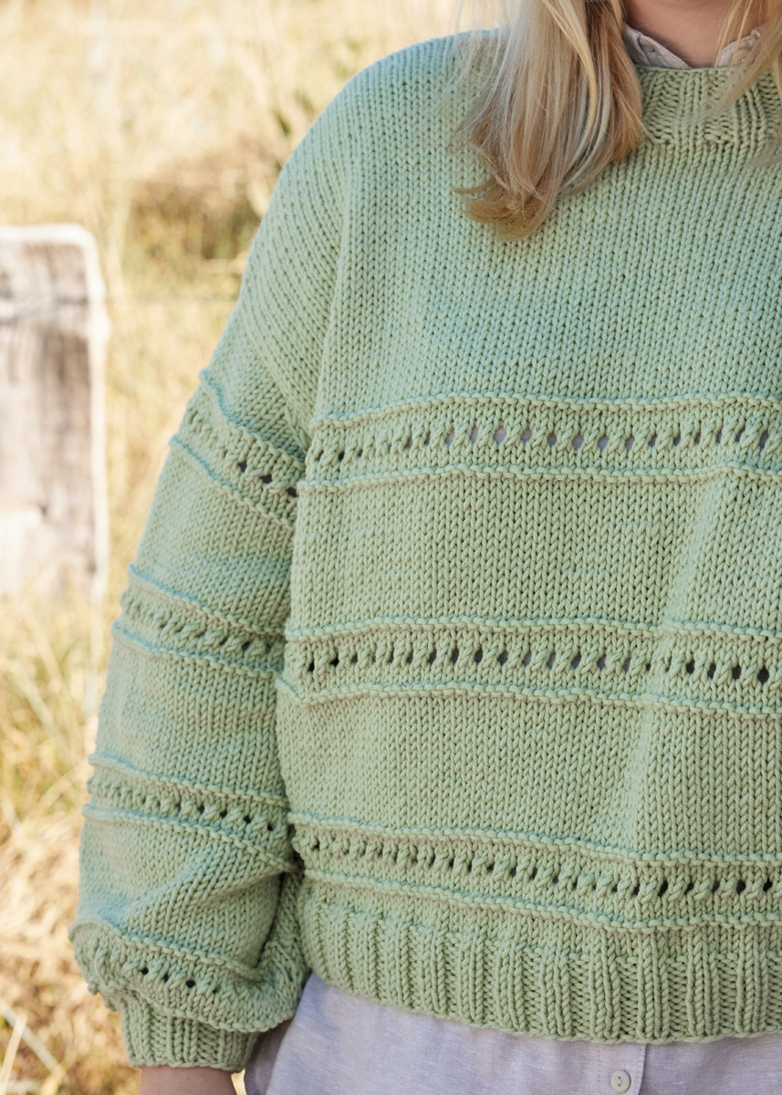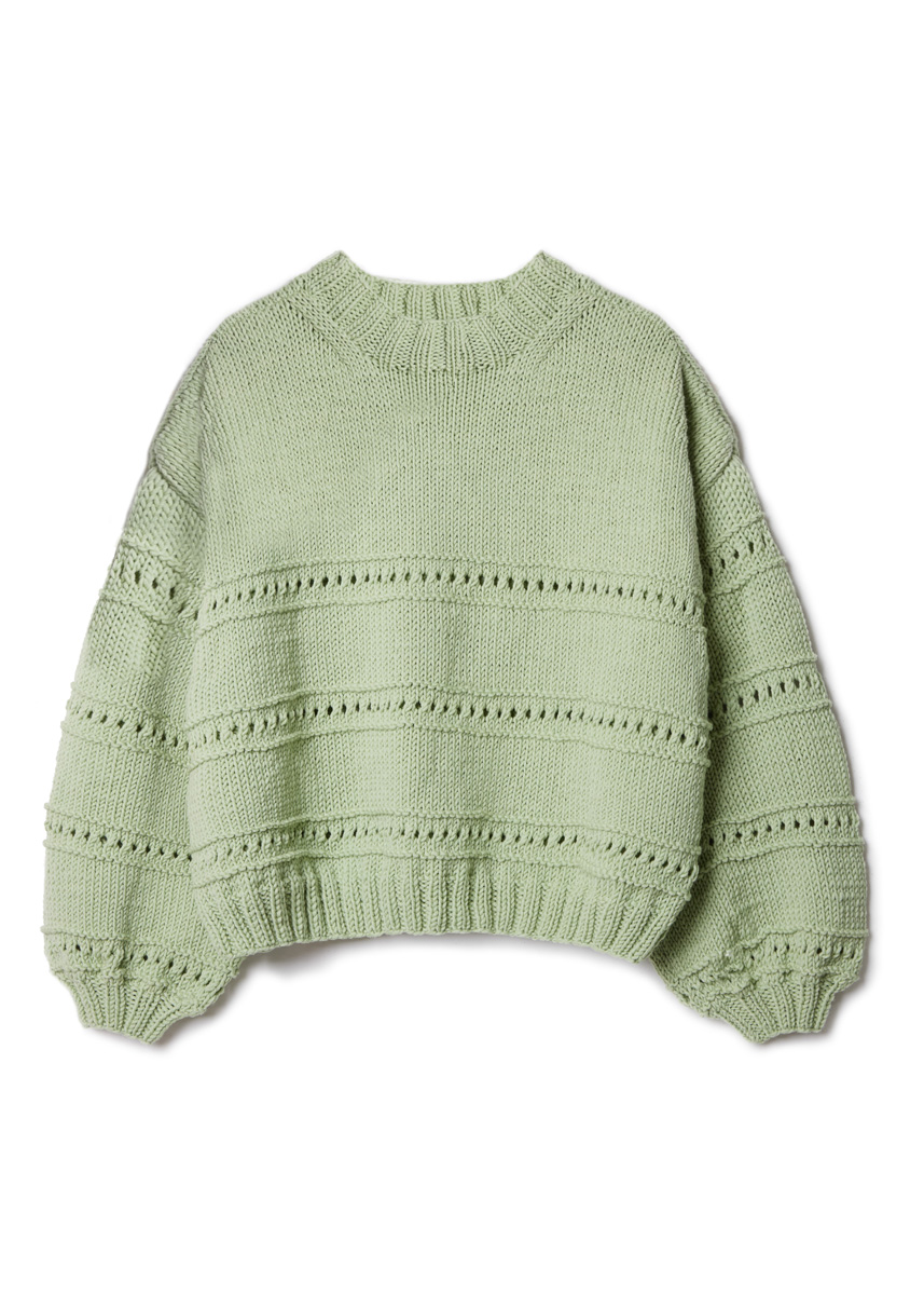 Lana Grossa Cool Wool Superbig (100% scheerwol (merino), ca. 80 m/50 g), 600 (650 - 700 - 750 - 800) g lichtgroen (kl 27), breinld 5,5 mm en 6 mm. 5 breinld zonder knop 5,5 mm