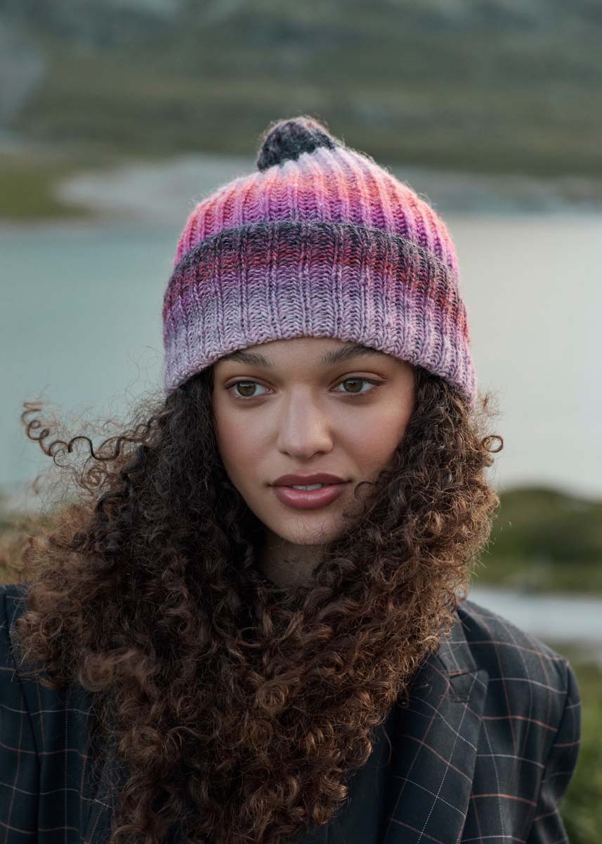 Gomitolo Fumo van Lana Grossa (50% scheerwol, 50% polyacryl, LL=ca 700 m/200 g): 200 g vaalroze/ roze/pink/roodviolet/licht- en donkergrijs/terracotta (kl. 513). Korte rondbreinld. of nld. zonder knop nr. 4.