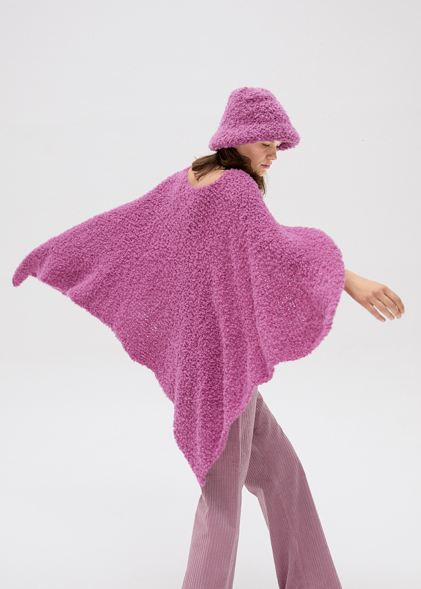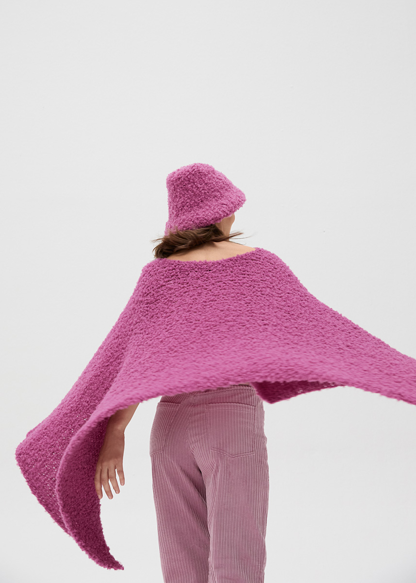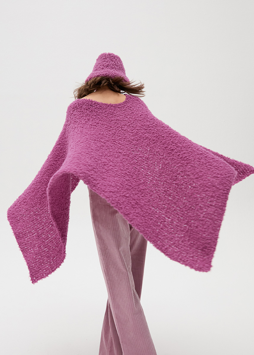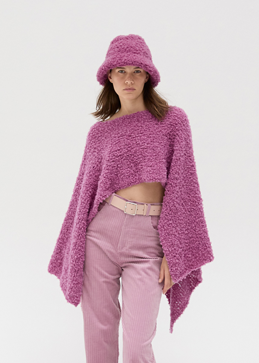 Lana Grossa ‘Orsetto’ (60% scheerwol (merino), 40% alpaca (superfijn), ca. 75 m/50 g): 400 g viooltjesroze (kl 4); breinld 7 mm