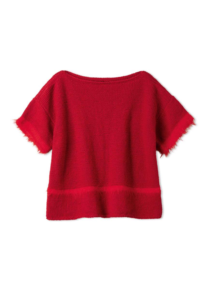 Lana Grossa-garen ‘Ecopuno’ (72% katoen, 17% scheerwol (merino), 11% alpaca (baby), ca. 215 m/50 g): ca. 400 (400 - 450 - 450) g rood (kl 6); Lana Grossa-garen ‘Basta’ (50% scheerwol (merino), 50% polyamide, ca. 100 m/50 g): 50 (50 - 50 - 50) g felrood (kl 27); breinld 6 mm.