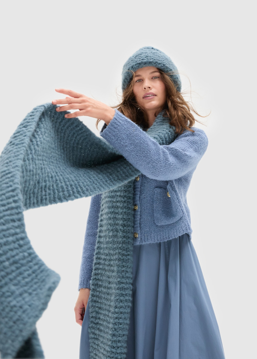 Tip: de sjaal wordt met een dubbele draad gebreid.