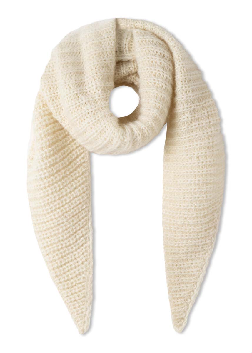 Lana Grossa Mohair di Gio (55% mohair (superkid), 45% scheerwol (merino superfijn), ca. 85 m/50 g), 250 g gebroken wit (kl 9); 1 rondbreinld 7 mm, 100 cm lang.