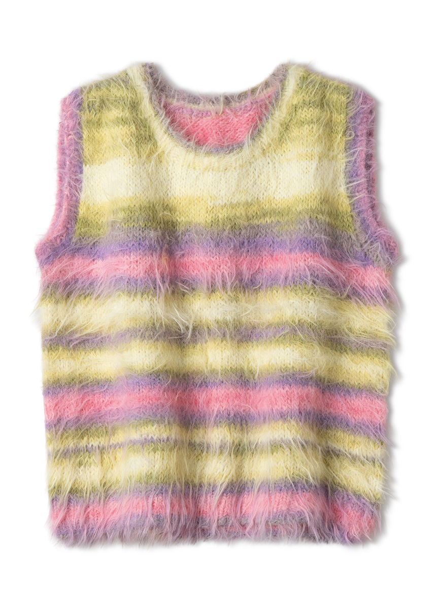 Lana Grossa-garen ‘Basta Mista’ (50% scheerwol (merino), 50% polyamide, ca. 100 m/50 g): 250 (250 - 300 - 300) g groengrijs/ grijsblauw/lichtpetrol/grijs-/lichtgroen (kl 115) of 250 (250 - 300 - 300) g perzik/abrikoos/oranje/roze/felroze/fuchsia (kl 111) of 250 (250 - 300 - 300) g crème/vanille/limoen/grijsgroen/roze/sering/lavendel (kl 112); rondbreinld 4 mm en 6 mm; 1 korte rondbreinld 4 mm.