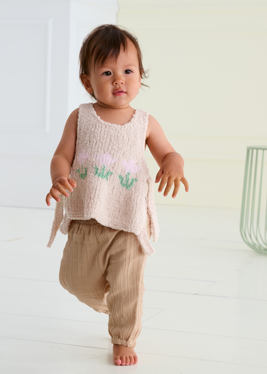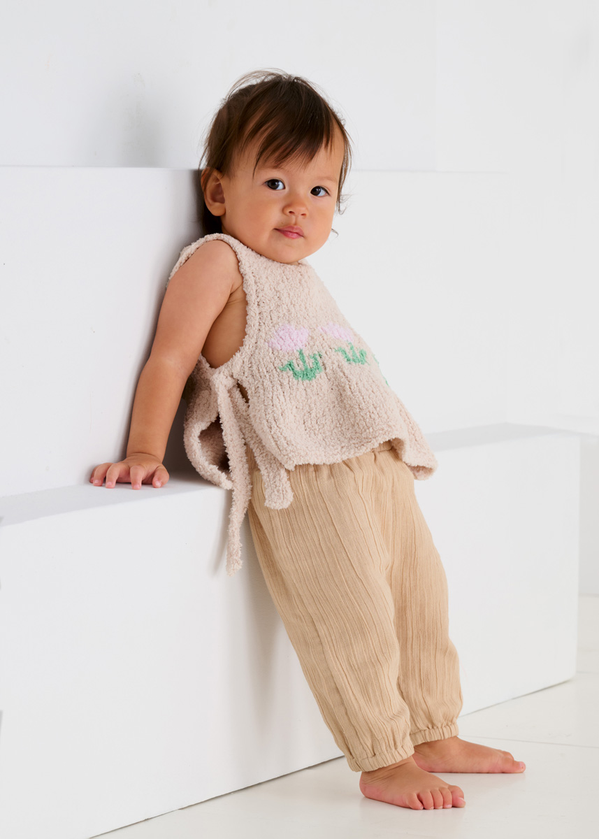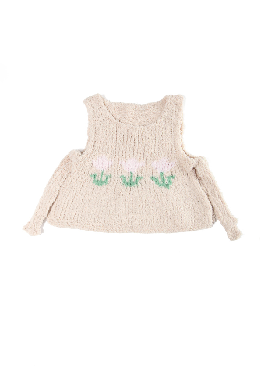 Lana Grossa Leggerissimo (100% gerecyclede polyamide); ca. 150 m/50 g): 50 (50/50/100) g lichtbeige (kl16) en 50 g heel lichtroze (kl 7) en mintgroen (kl 11); rondbreinld 4 mm en 4,5 mm; markeerringen