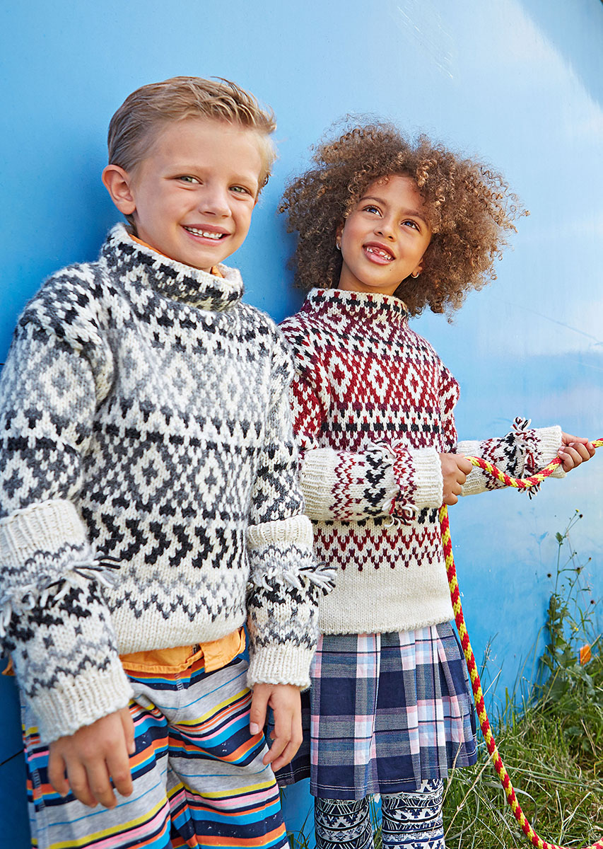 Lana Grossa Alta Moda Alpaca (90% alpaca, 5% scheerwol, 5% polyamide, ca. 140 m/50 g), 500 (550) g ecru (kl 14), model in grijze tinten: 100 (150) g donkergrijs gemêleerd (kl 22), 50 (100) g lichtgrijs gemêleerd (kl 12) en 50 (100) g antraciet (kl 13), model in rode tinten: 100 (150) g bordeaux gemêleerd (kl 54), 50 (100) g donkerrood gemêleerd (kl 40) en 50 (100) g zwart (kl 6); breinld nr. 5 en 5,5.