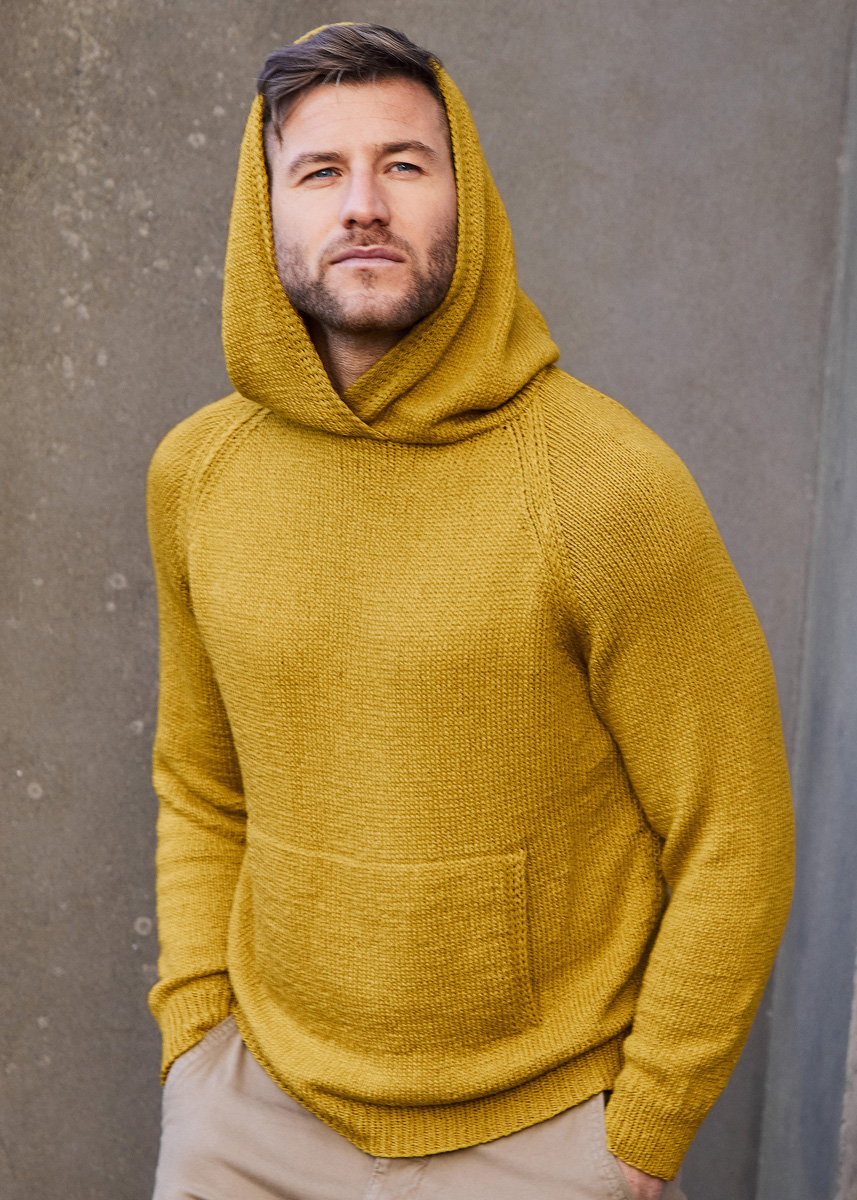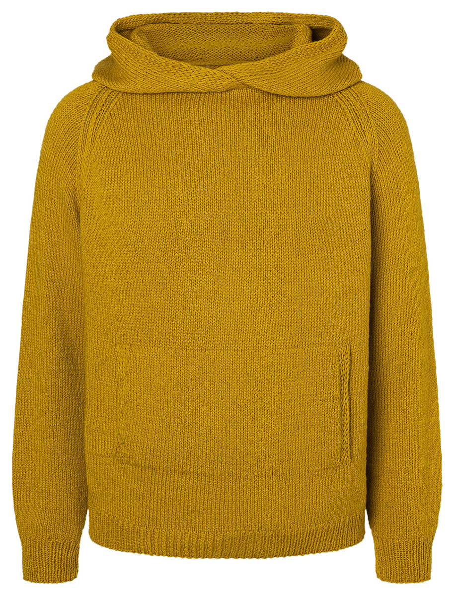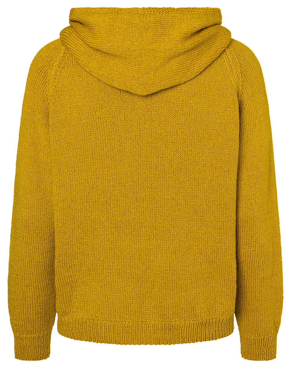 Lana Grossa Alta Moda Cotolana (45% scheerwol (merinos), 45% pima katoen, 10% polyamide, looplengte 150 m/50 g), 600 (650 – 700) g curry (kl. 24); breinaalden nr. 3 en 4