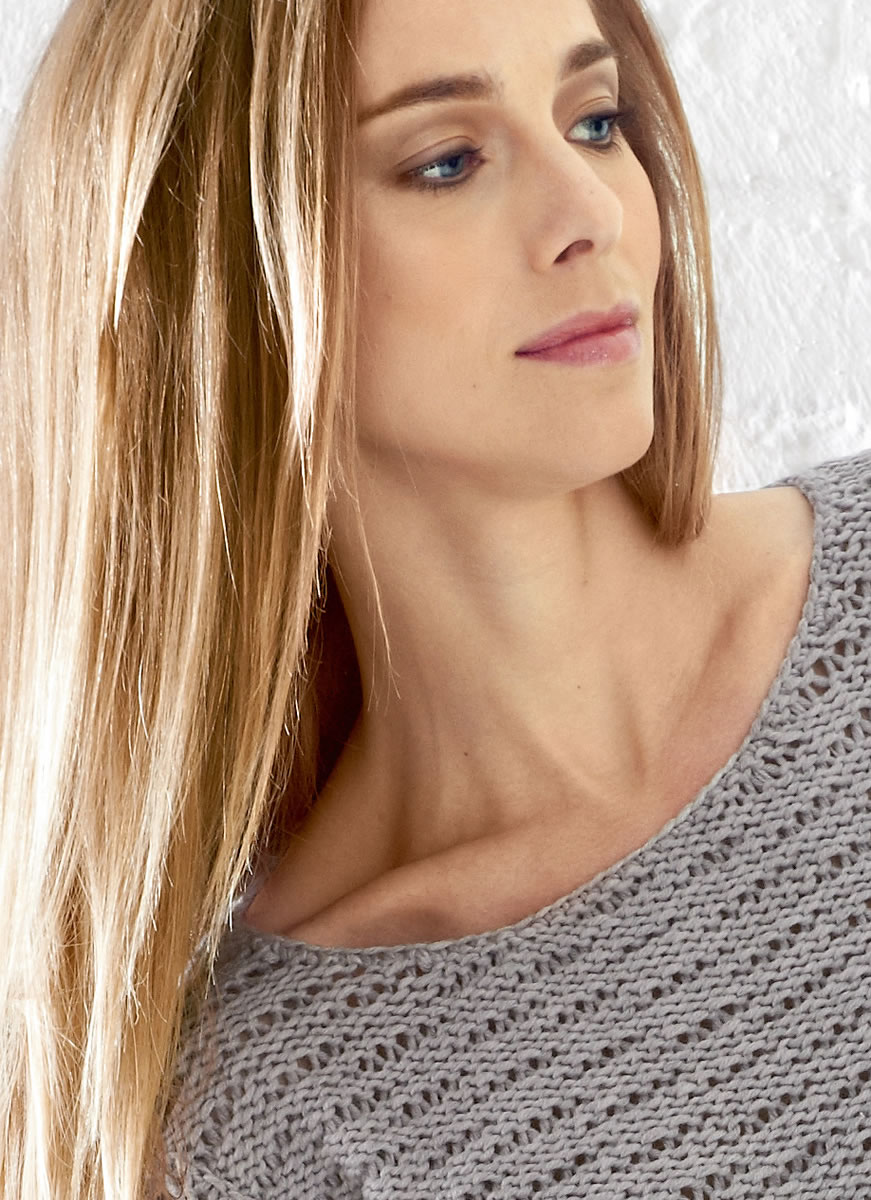 Een elegant design, puur grijs en een decoratief gebreid tailleboordje - een charmante combinatie voor een echte fashion-highlight. Wordt dit uw nieuwe lievelingsbasic?