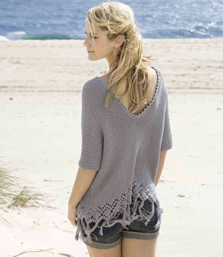 Het luchtige gebreide tuniekje zorgt met diep decolleté en de decoratieve ajourrand met franjes reeds nu voor summer-feeling. En dan is het ook nog veel eenvoudiger te breien dan het eruit ziet!
