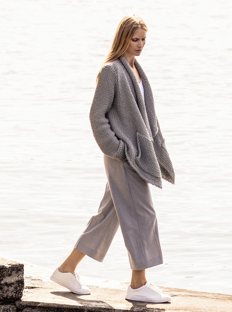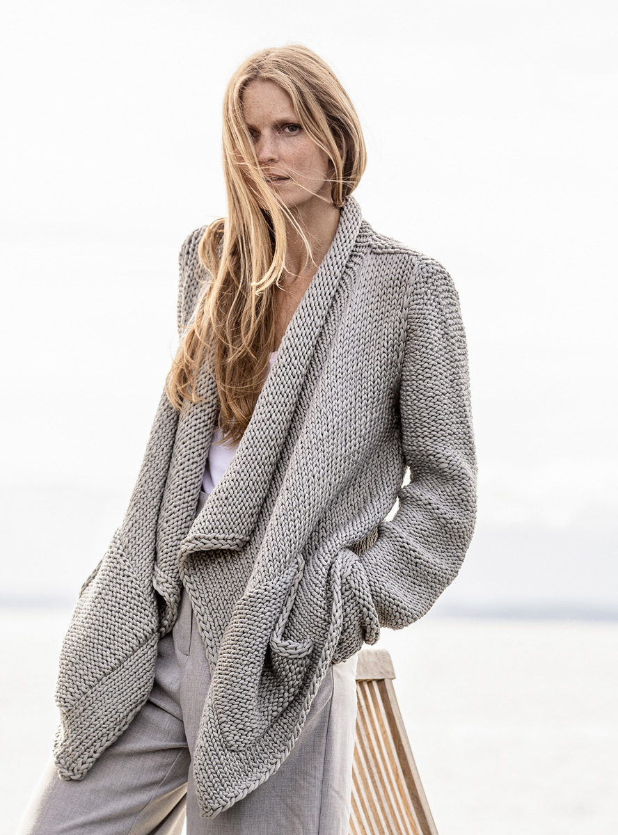 Lana Grossa About Berlin Bulky (50% katoen, 50% micromodaal, looplengte 47 m/50 g), 950 (1000 – 1050) g lichtgrijs (kl. 6); breinaalden nr. 10