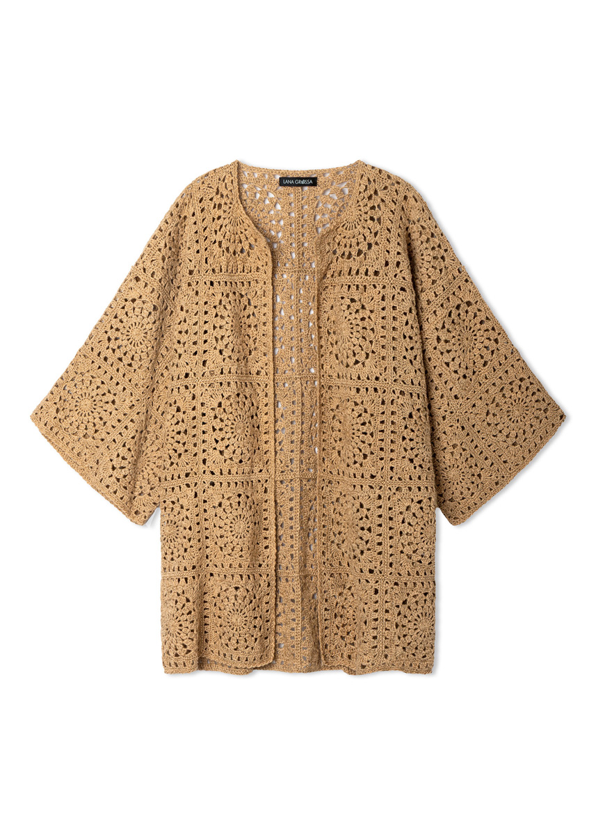 Lana Grossa-garen ‘Diversa’ (74% katoen, 26% viscose, ca. 210 m/50 g): ca. 700 g topaasoranje (kl 31); 1 haaknld 4 mm.
