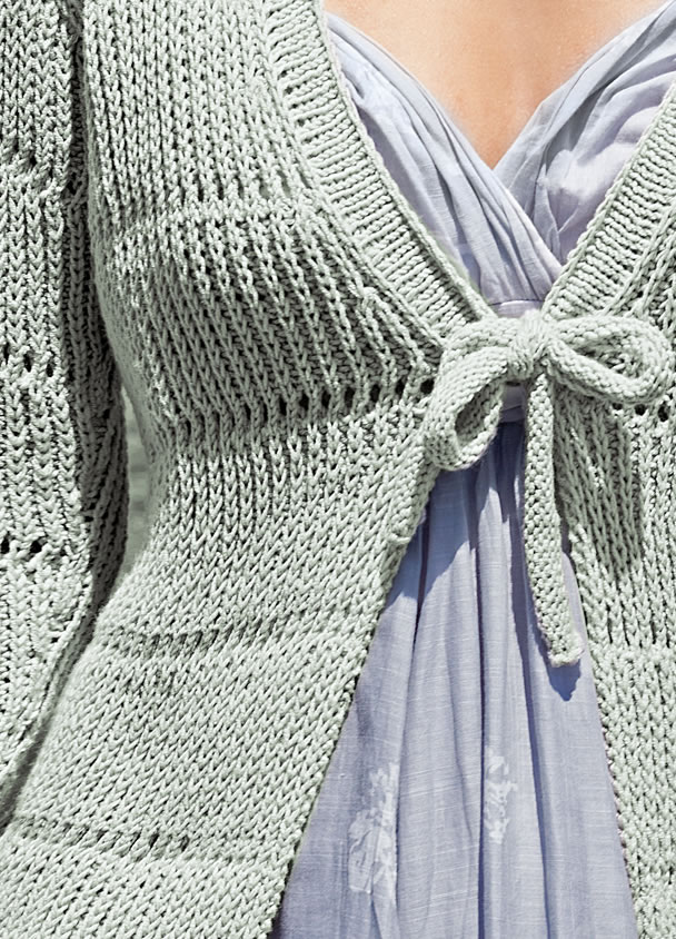 ca. 550 (600 - 650) g “Elastico” (96% katoen, 4% polyester (elité), ll. = ca. 160 m/50 g) van Lana Grossa in grijsgroen (kl. 120); breinld. nr. 4; 1 rondbreinld. nr. 4, 60 cm lang.