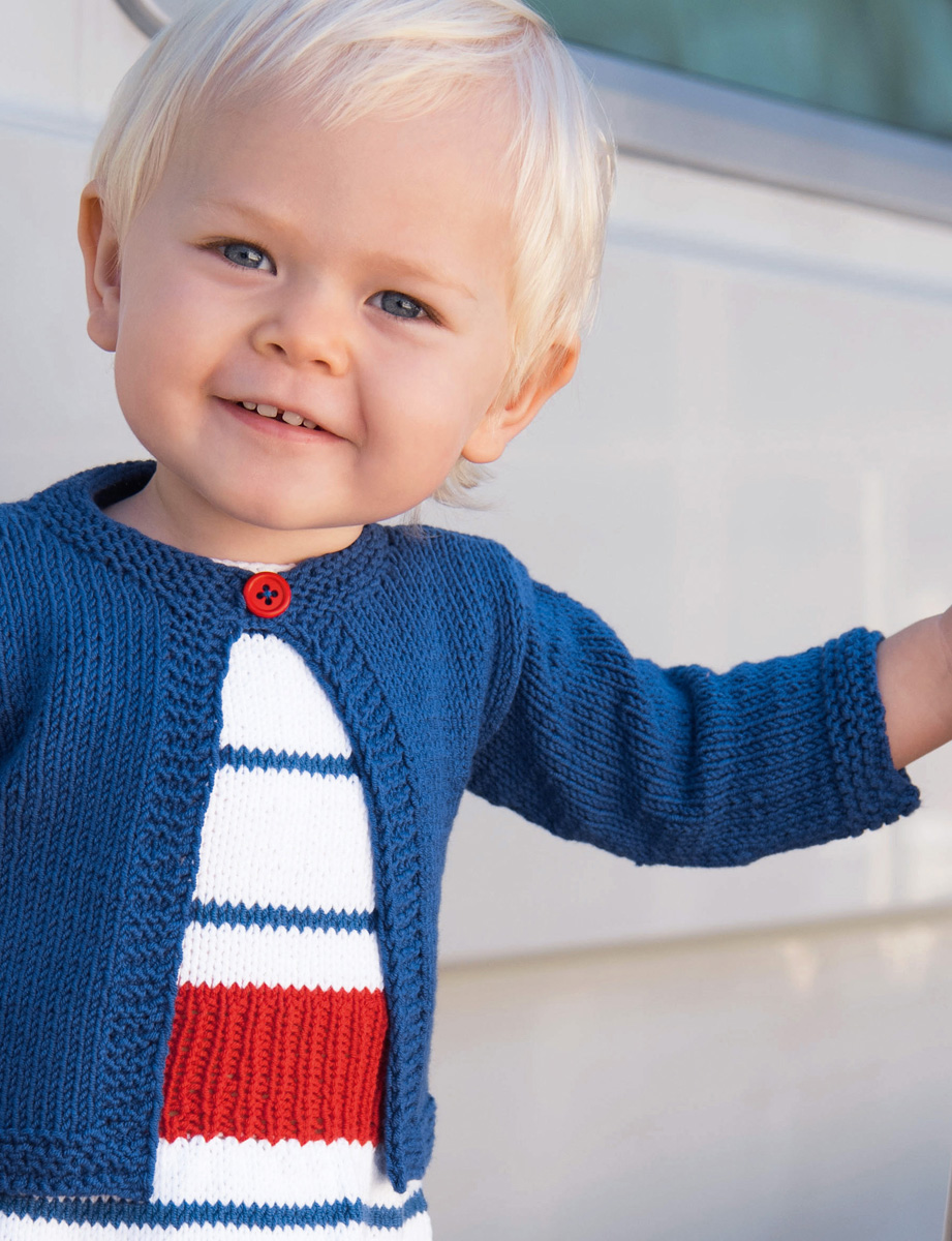 Lana Grossa Elastico (96 % katoen, 4 % polyester, looplengte 160 m/50 g) 100 (100/150) g royal (kl. 114); breinaalden nr. 4, een 40 cm lange rondbreinld. nr. 4, haaknaald nr. 3,5; een knoop met 15 mm Ø