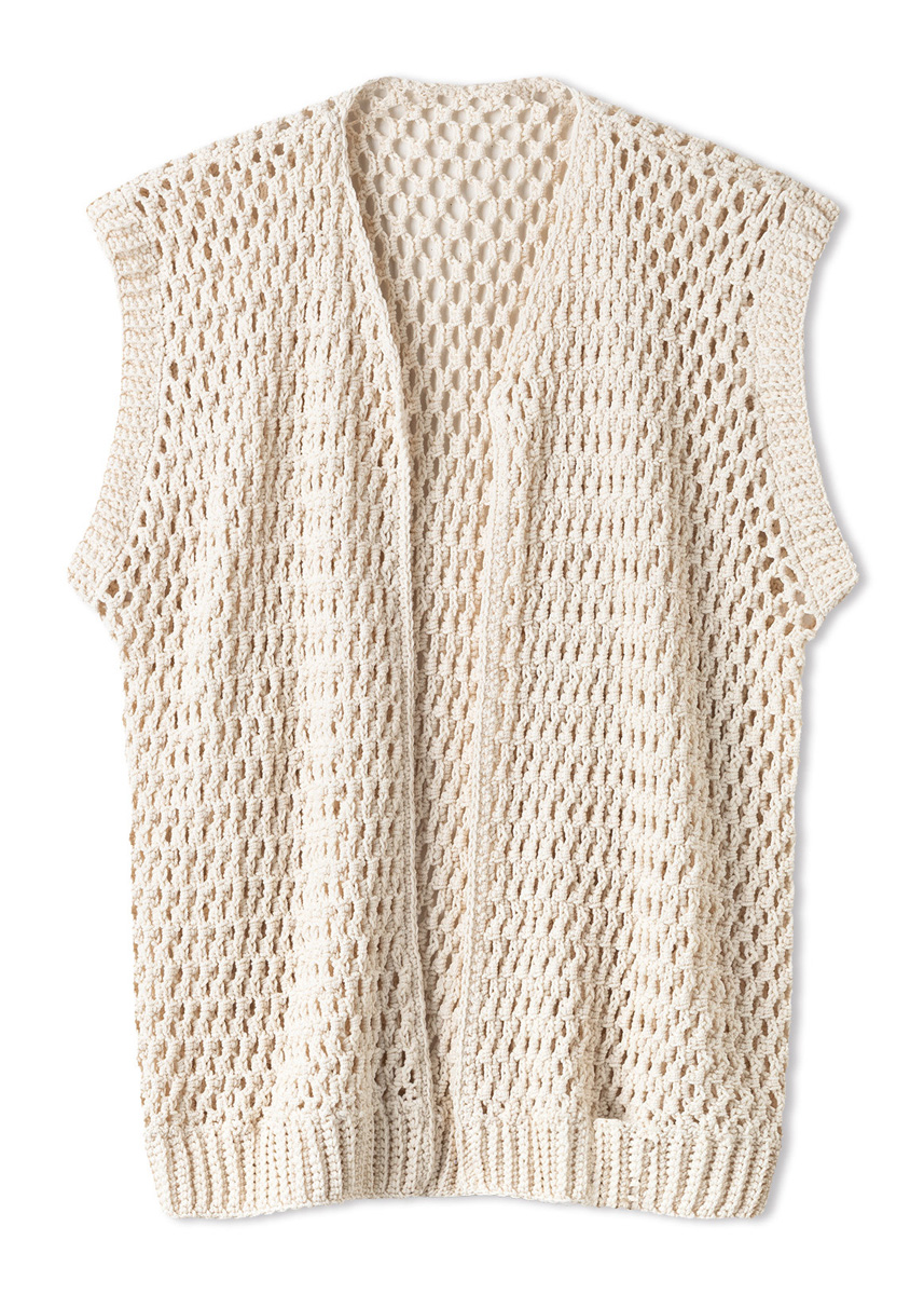 Lana Grossa-garen ‘Gioia’ (75% katoen, 25% polyamide (gerecycled), ca. 110 m/50 g): ca. 400 (400 - 450 - 450) g crème (kl 2); haaknld 4 mm.