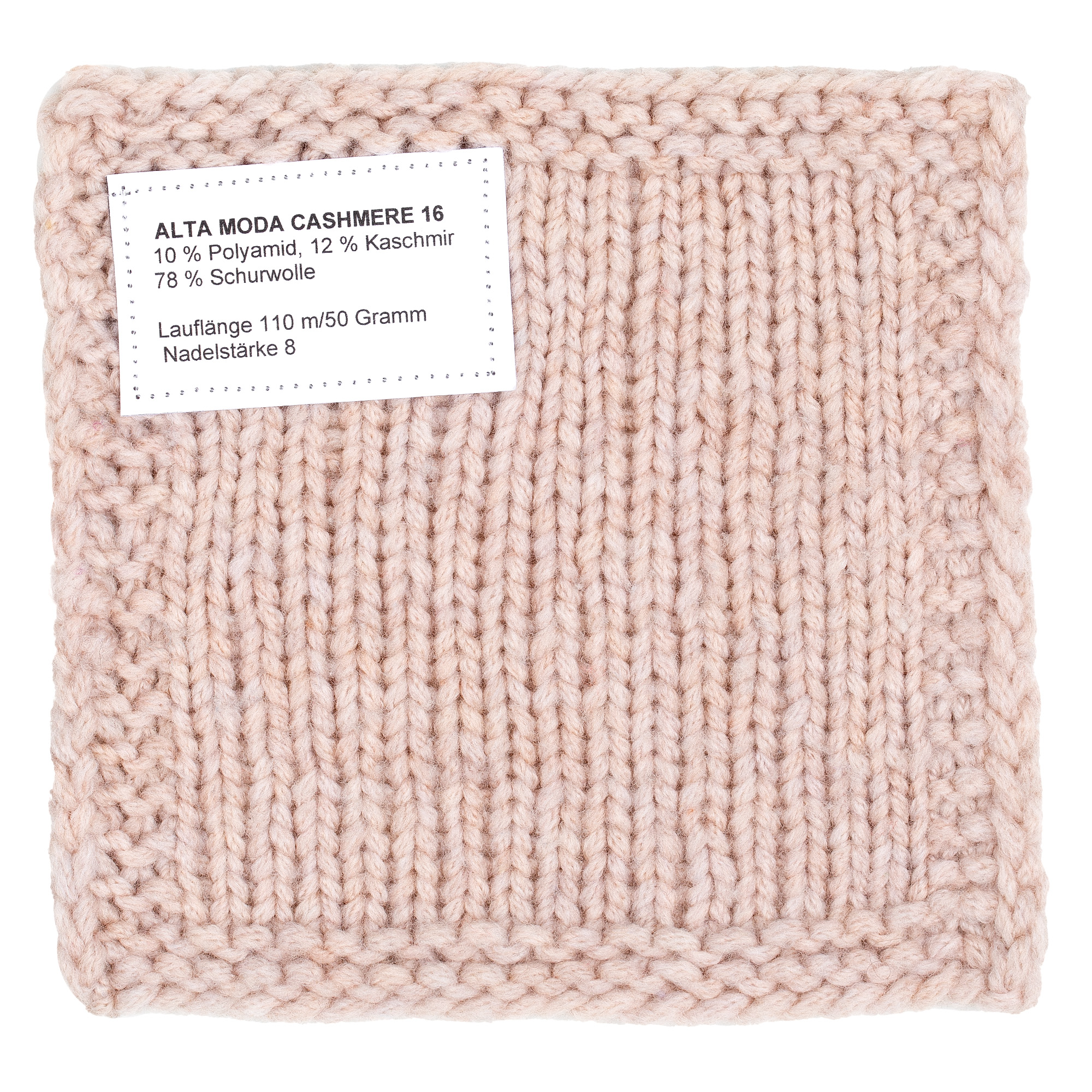 Alta Moda Cashmere 16 is een luxueus zacht garen met een verfijnde uitstraling – gemaakt van een fijne mix van kasjmier, merinowol en gerecycled polyamide. De innovatieve kettingstructuur maakt het garen volumineus, licht en bijzonder comfortabel, ideaal voor stijlvolle wintermode met een hoog knusseffect. Of het nu truien, vesten of accessoires zijn – dit garen zorgt voor een gelijkmatig stekenbeeld, aangename warmte en het hoogste draagcomfort.