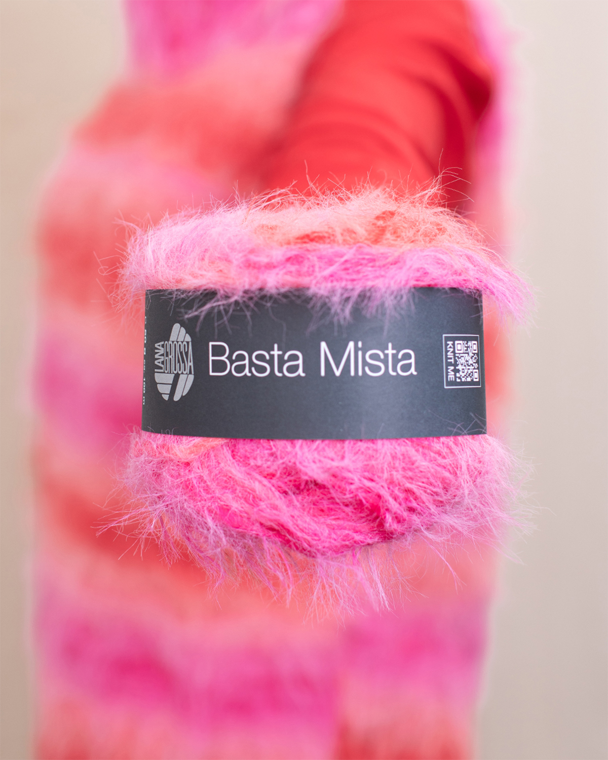 Basta Mista is een creatief effectgaren met een fake fur-uitstraling, dat indruk maakt door de los getwijnde structuur en de mix van franjegaren en fijne merinovezels. De unieke combinatie zorgt voor een pluizige, volumineuze look met een subtiele glans – perfect voor modieuze highlights, accessoires of extravagante accenten in breiprojecten. Of je het nu op zichzelf gebruikt of als blikvanger combineert: Basta Mista brengt textuur, zachtheid en een flinke dosis plezier op de naalden!