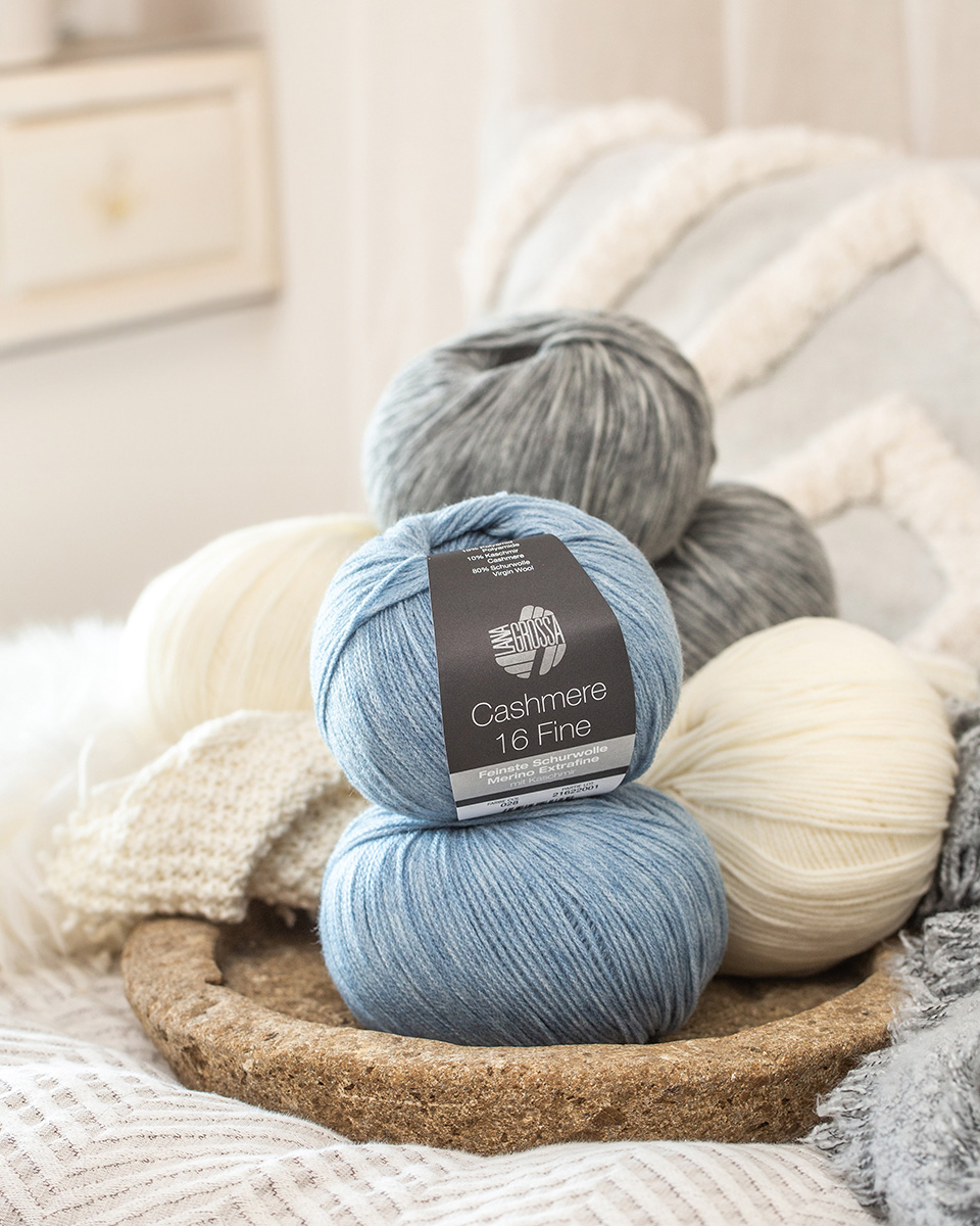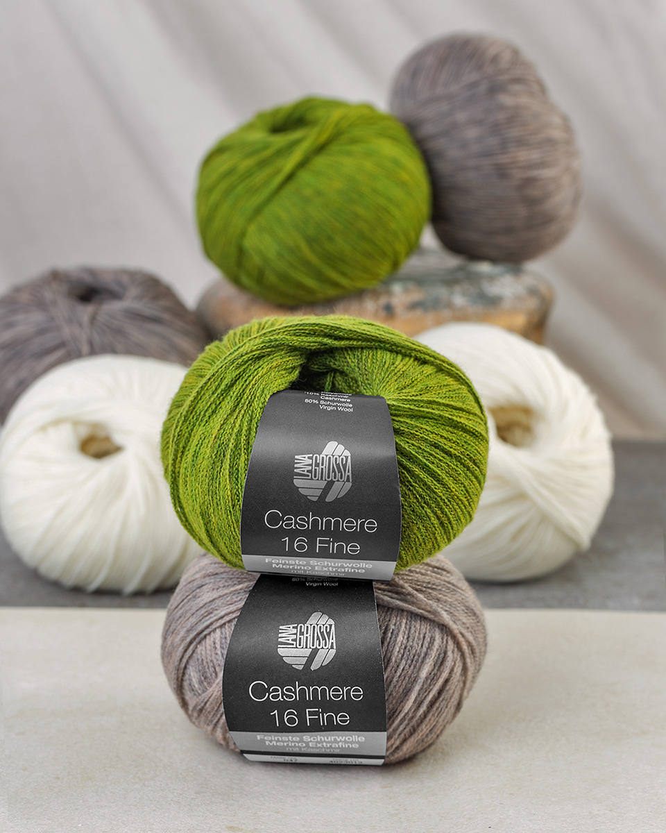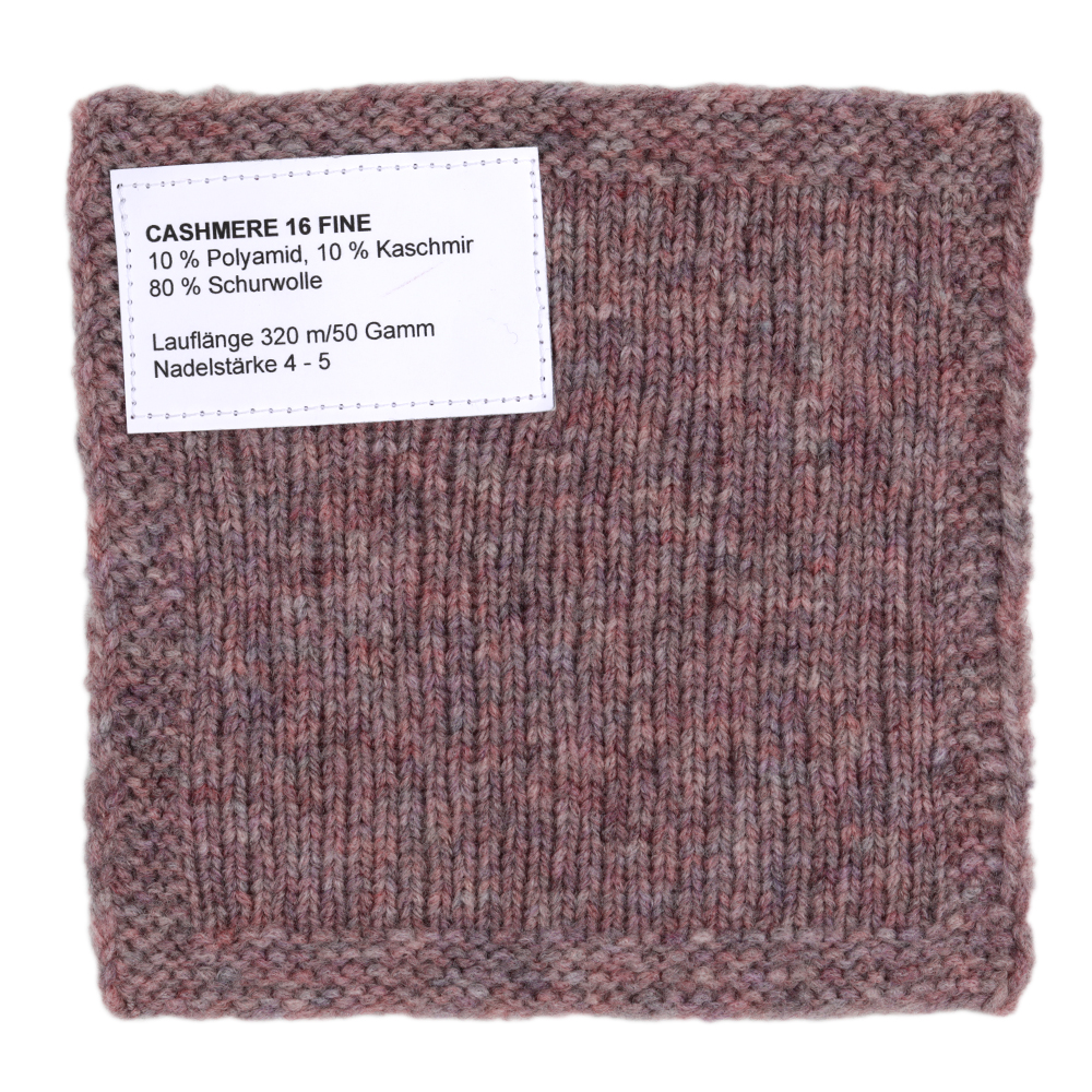 Cashmere 16 Fine is een bijzonder verfijnd, zacht garen van een hoogwaardige mix van extra fijne merinowol en kasjmier. De fijne kettingstructuur maakt het licht, comfortabel en vormvast – perfect voor delicate, luxe breistukken met een zachte touch.