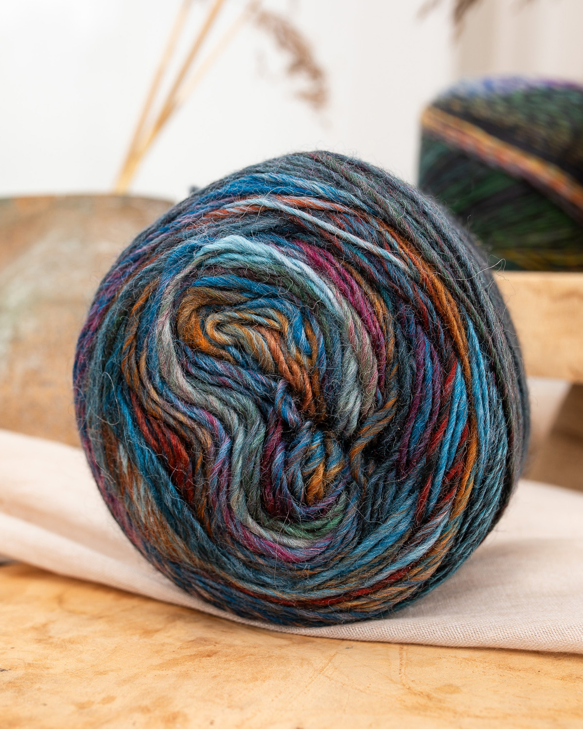 Colorissimo II is een fascinerend verloopgaren van 100% merinowol dat met zijn intense, harmonieus op elkaar afgestemde kleurcombinaties elk breiwerk tot een echte blikvanger maakt. Het is aangenaam zacht, warm en tegelijkertijd licht – ideaal voor truien, sjaals, omslagdoeken of kleurrijke accessoires. Dankzij het lange kleurverloop ontstaan tijdens het breien vloeiende overgangen en levendige patronen – helemaal zonder moeite.