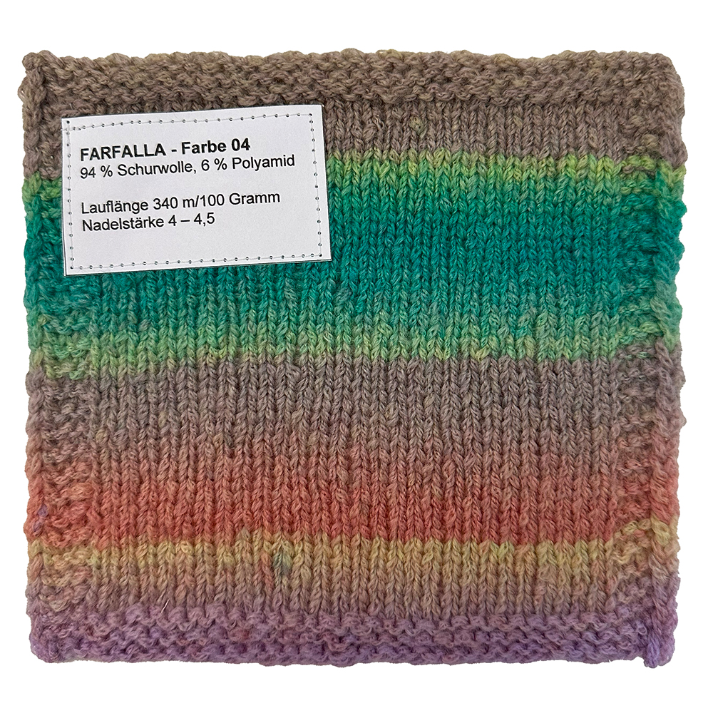 Farfalla is een heel bijzonder garen: licht, zacht en met een fijne, levendige structuur die elk breiwerk net dat beetje extra geeft. Een speciaal hoogtepunt is het subtiele kleurverloop dat vanzelf ontstaat tijdens het breien. De zachte overgangen zorgen voor een harmonisch en levendig kleurenspel – zonder ingewikkelde patronen of garenwissels. Zo ontstaan vanzelf unieke stukken met een zachte dynamiek.