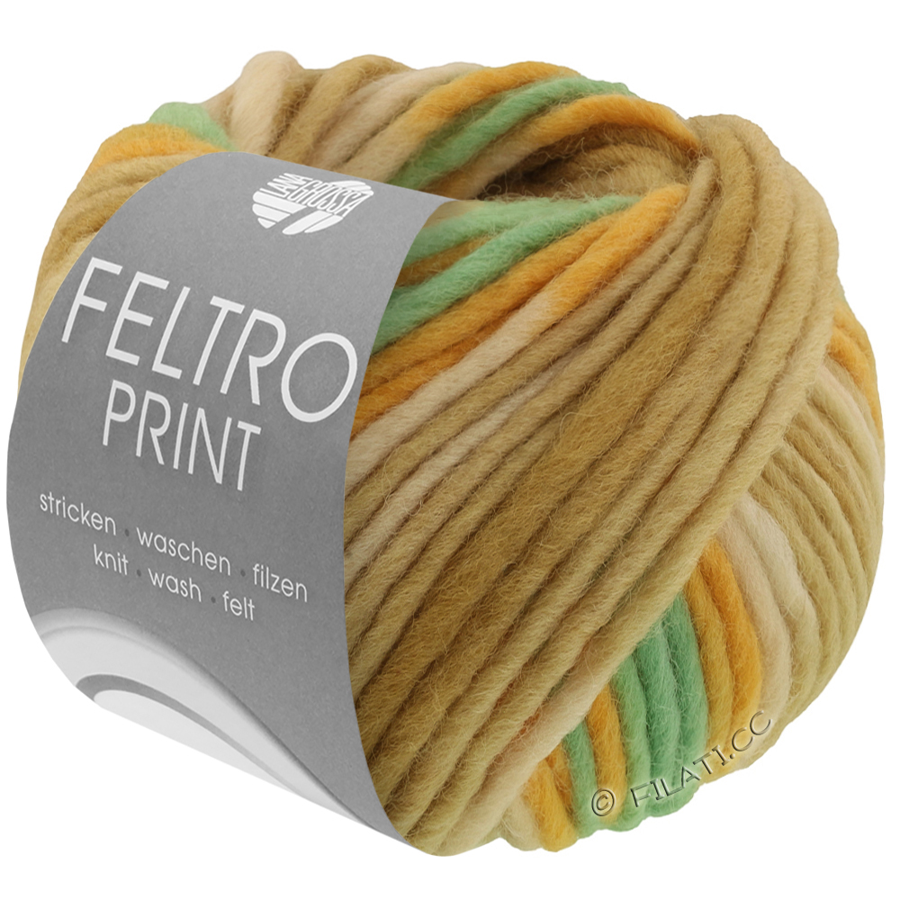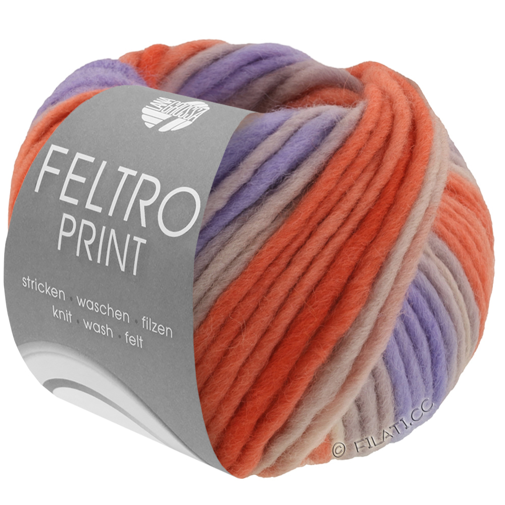 Feltro Print is het kleurrijke viltgaren van Lana Grossa met afwisselende kleurverlopen – perfect voor creatieve viltprojecten met een bijzondere uitstraling. Net als de klassieke Feltro-kwaliteit bestaat het uit 100% scheerwol en is het eenvoudig te verwerken en in de wasmachine te vervilten. Ideaal voor tassen, pantoffels, manden of decoratieve objecten die dankzij de bonte prints zonder patroonwissel levendig en uniek ogen. Elke viltbeurt levert een uniek resultaat op!
