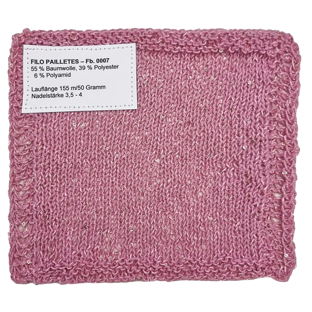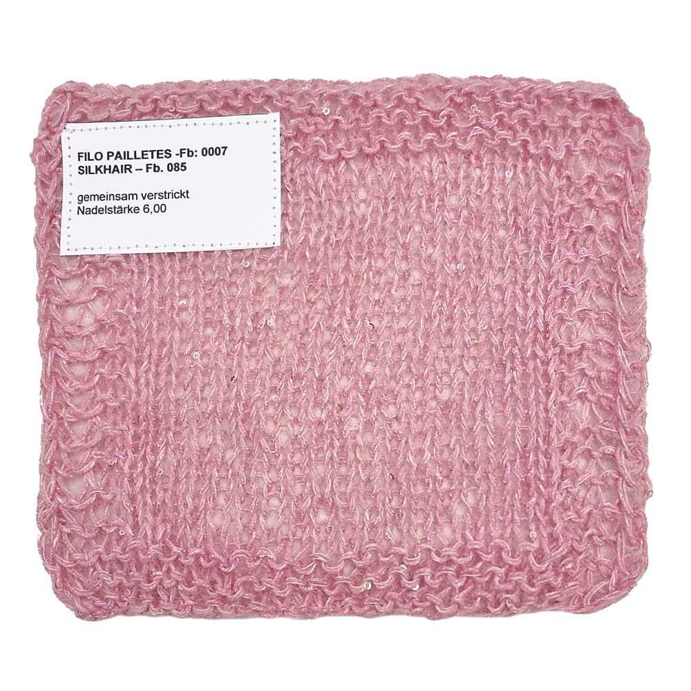 Lana Grossa Filo Paillettes is een fijn, lichtgewicht en bijzonder garen met subtiel verwerkte pailletten voor een stijlvolle glans. Het is perfect om een elegante touch toe te voegen aan eenvoudige steken – of het nu gaat om truien, sjaals of feestelijke accessoires. Ideaal voor projecten met een vleugje glamour en een subtiele sprankeling.