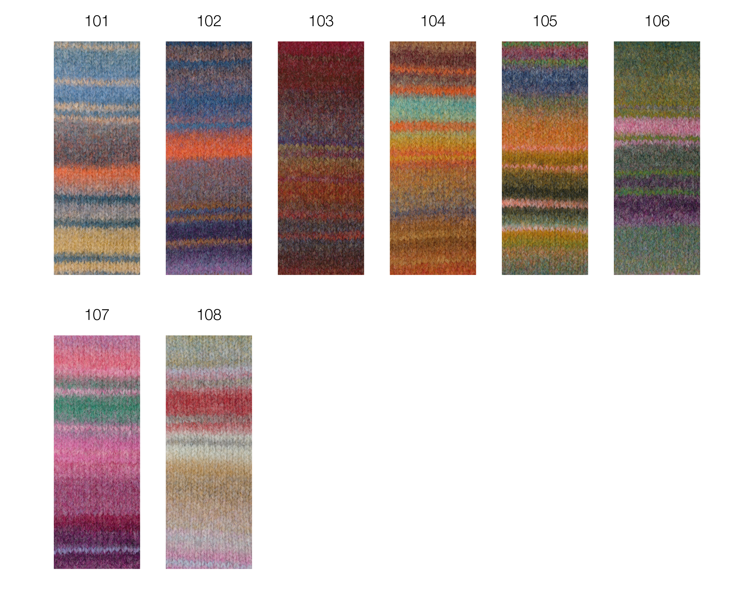 Perfect voor iedereen die van snel, zacht en opvallend houdt. De hoogwaardige mix van alpaca en polyamide zorgt voor aangename warmte, lichtheid en duurzaamheid. Het kleurverloop in ringelstrepen geeft elk breiwerk een unieke, levendige uitstraling – helemaal zonder extra moeite. Ideaal voor beginners en voor iedereen die van snelle resultaten houdt: met dikke naalden maak je in een handomdraai modieuze mutsen, volumineuze sjaals, dekens of trendy oversized kledingstukken – elk stuk een unicum.
