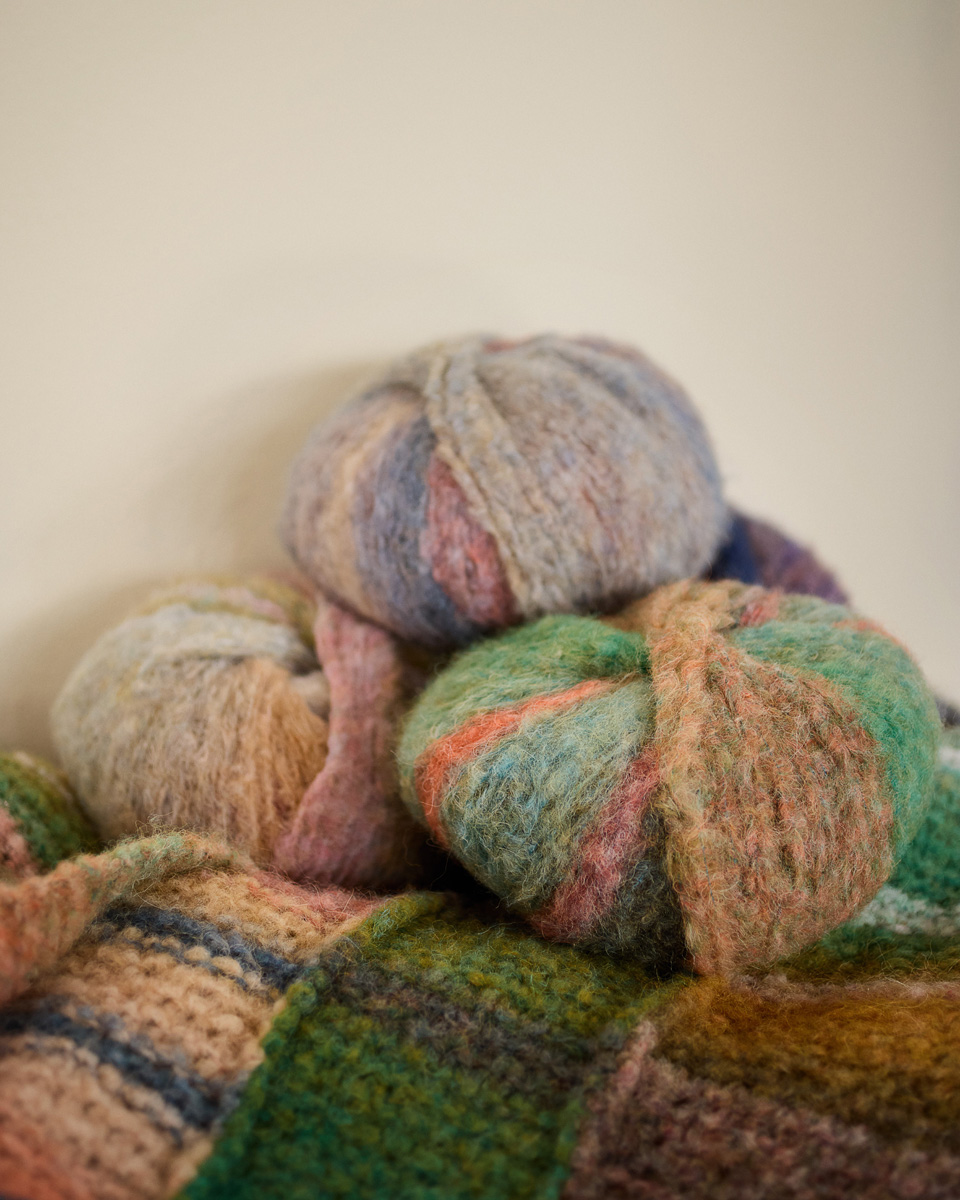 Volumineus alpaca garen met effectstructuur in een kleurrijke strepenmix.