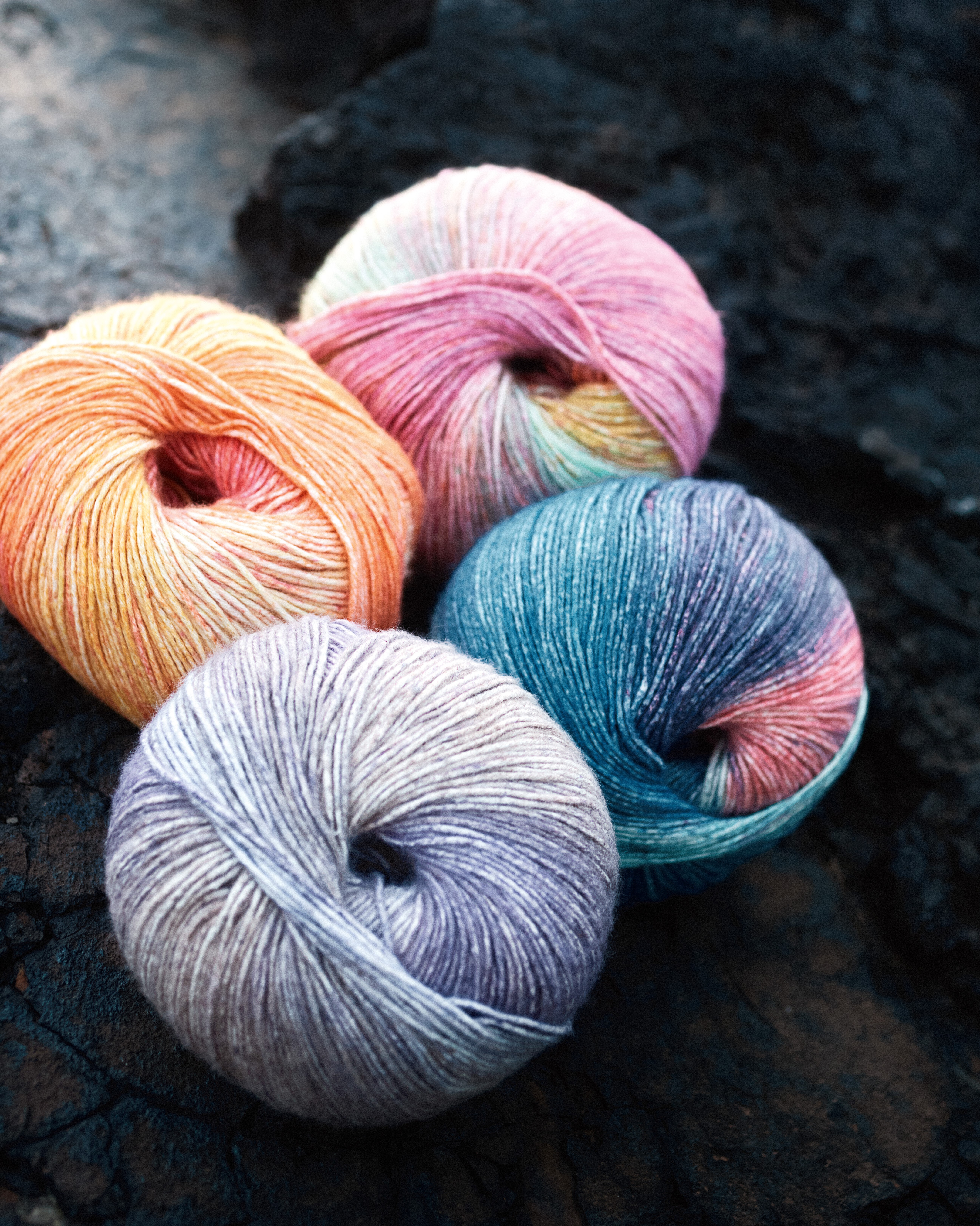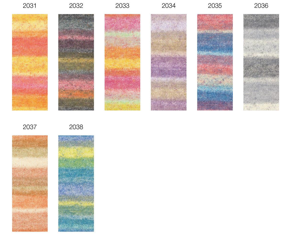 Pluizig, zacht katoenen garen met een interessant gestreept kleurverloop, rechtstreeks van de bol.
