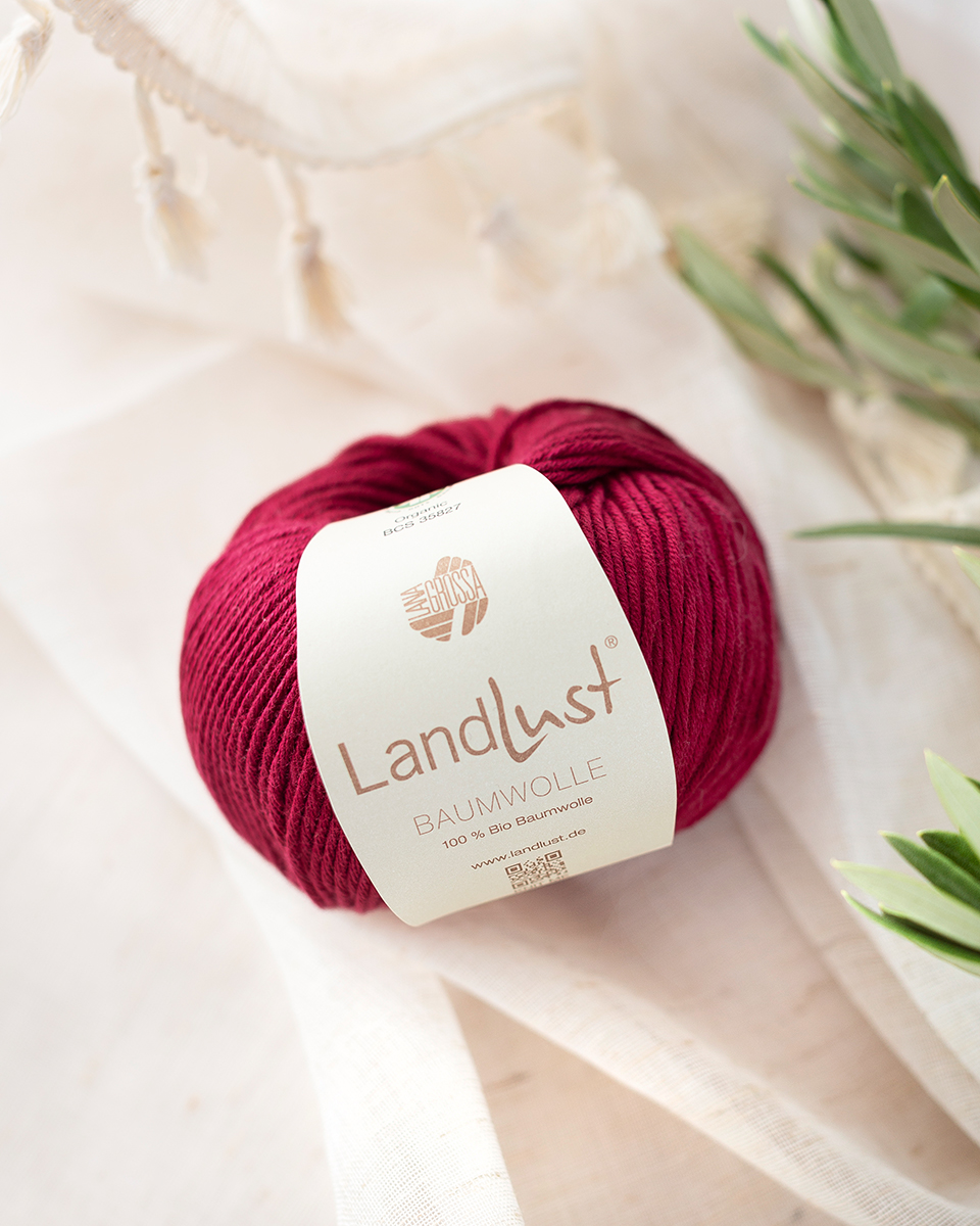 Lana Grossa LANDLUST BAUMWOLLE (GOTS)incl. btw, excl. verzendkosten, Artikelprijs: 90,00 / kgexcl. btw, excl. verzendkosten, Artikelprijs: 75,60 / kg