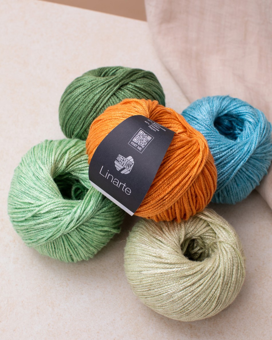 Linarte is een verfijnd zomergaren met elegante glans en een natuurlijke structuur. De bijzondere mix van viscose, katoen, linnen en polyamide zorgt voor een aangenaam zachte touch, een koele grip en een gelijkmatig stekenbeeld met een subtiele glans. Ideaal voor luchtige tops, truien, sjaals of vesten die zowel stijlvol als comfortabel zijn – perfect voor warme dagen met een modieuze uitstraling.