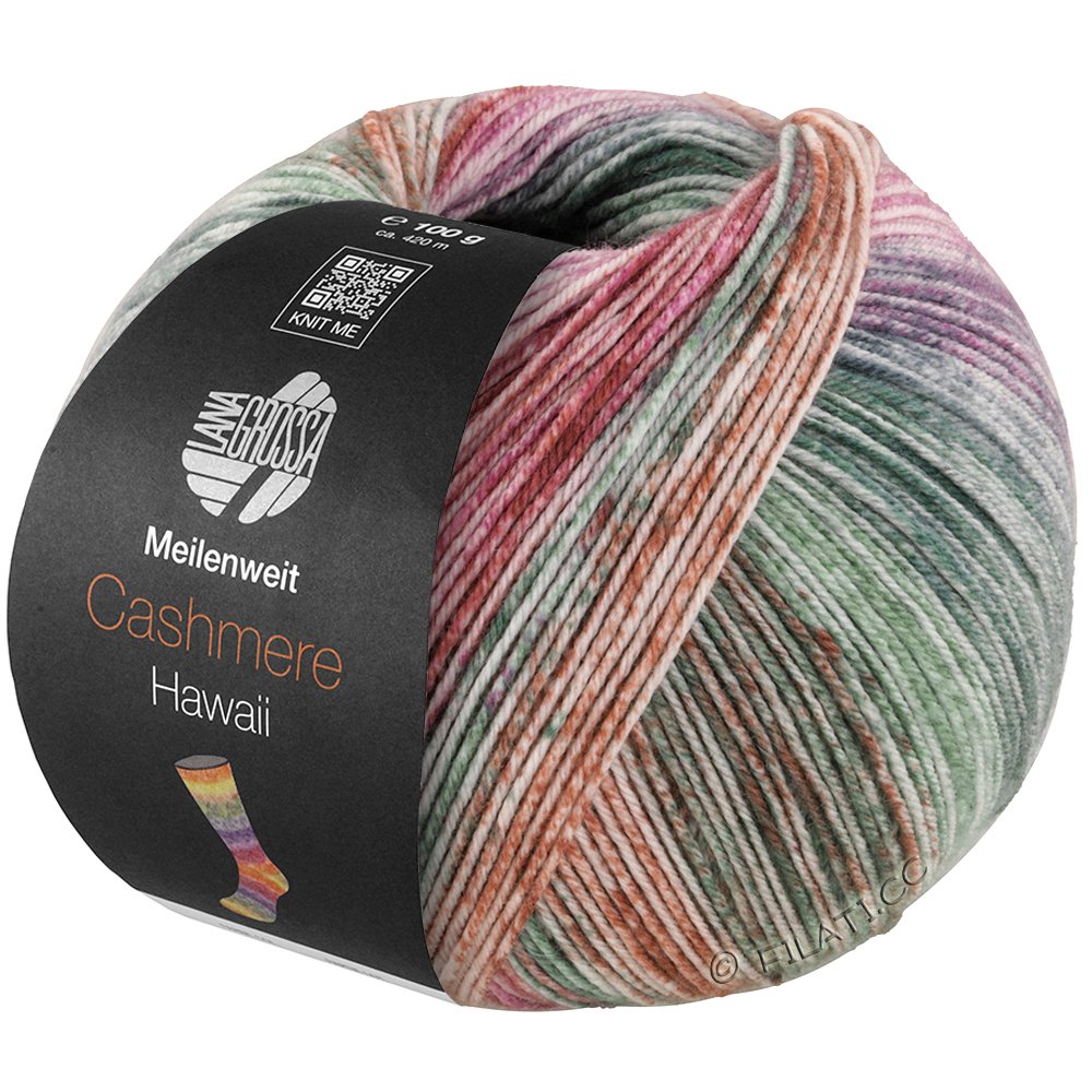 Lana Grossa Meilenweit 100 Cashmere Hawaii brengt met kleurrijke kleurverlopen en luxe kasjmier een vakantiesfeer op de breinaalden. Het hoogwaardige sokkengaren combineert zachtheid, duurzaamheid en onderhoudsvriendelijke eigenschappen – ideaal voor kleurrijke sokken.