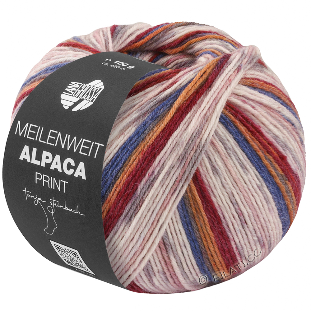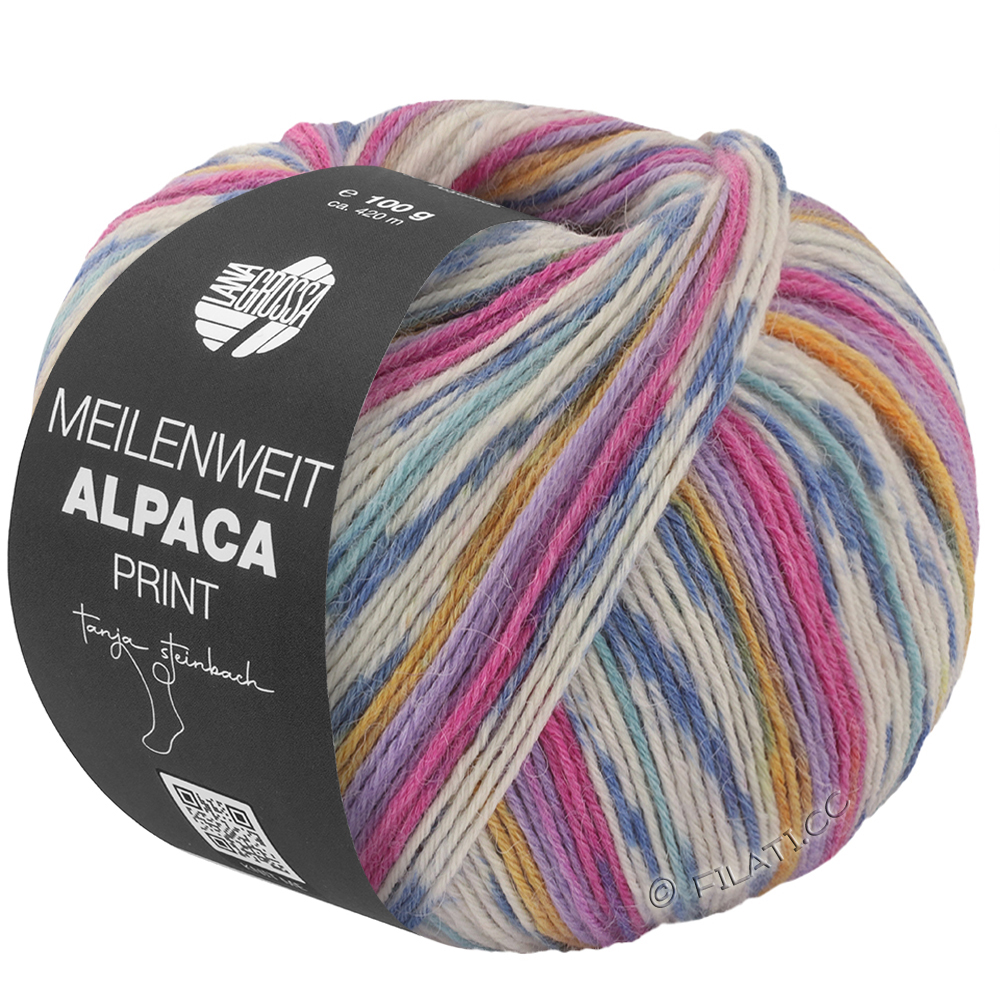 Lana Grossa Meilenweit Alpaca Print 6-draads combineert knus zacht alpacagaren met stijlvolle kleurverlopen. Het 6-draads sokkengaren is bijzonder warm, slijtvast en aangenaam op de huid.
