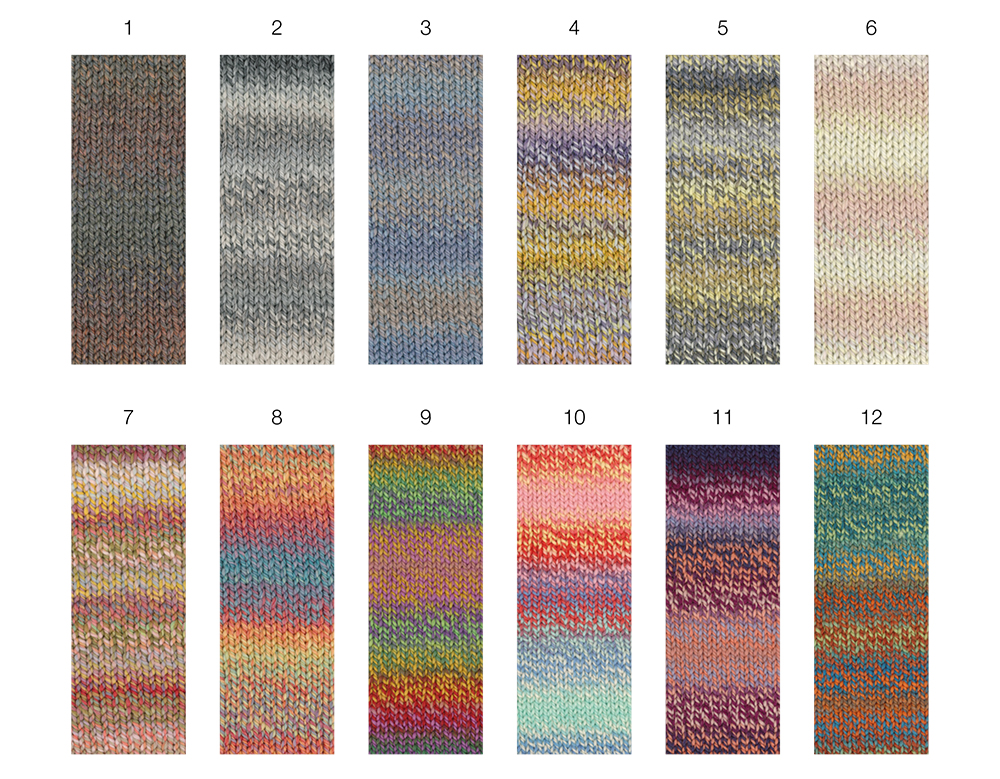 48 % Scheerwol merino, 8 % Yak, 36 % Viscose, 8 % Nylon