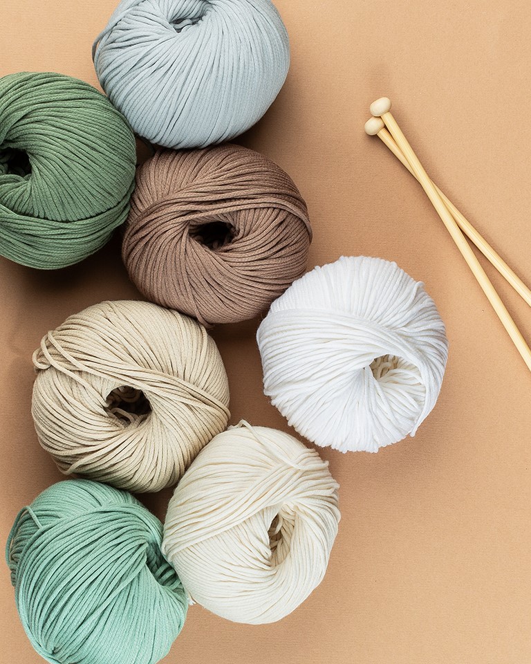 Zacht gevuld buisgaren van biologisch katoen en polyamide.