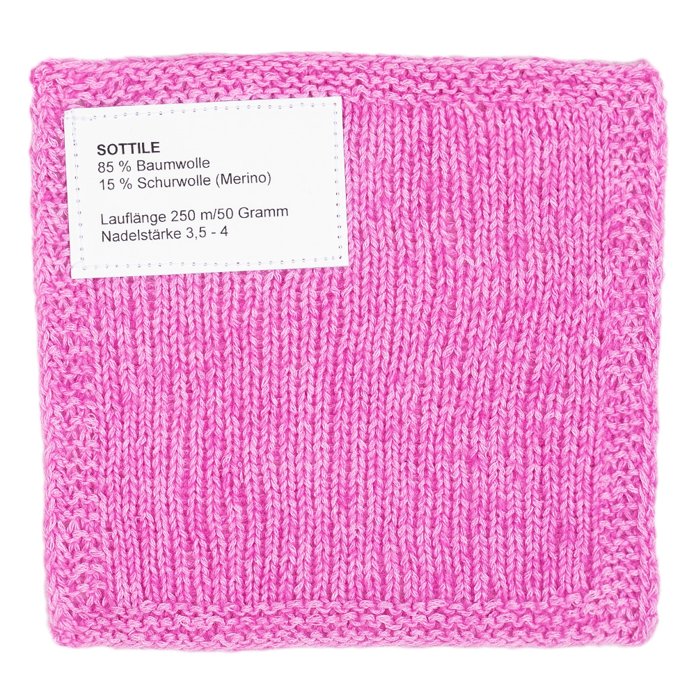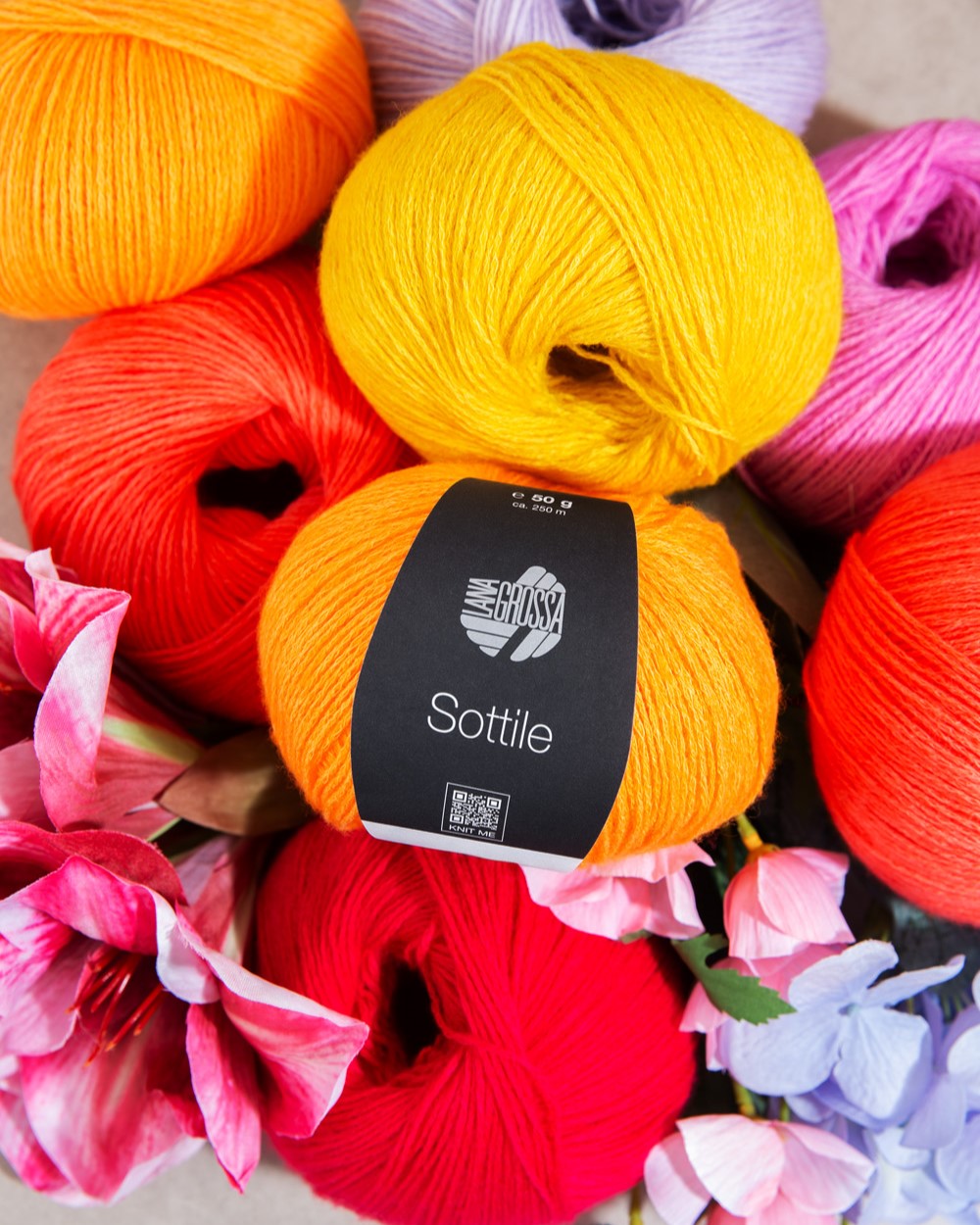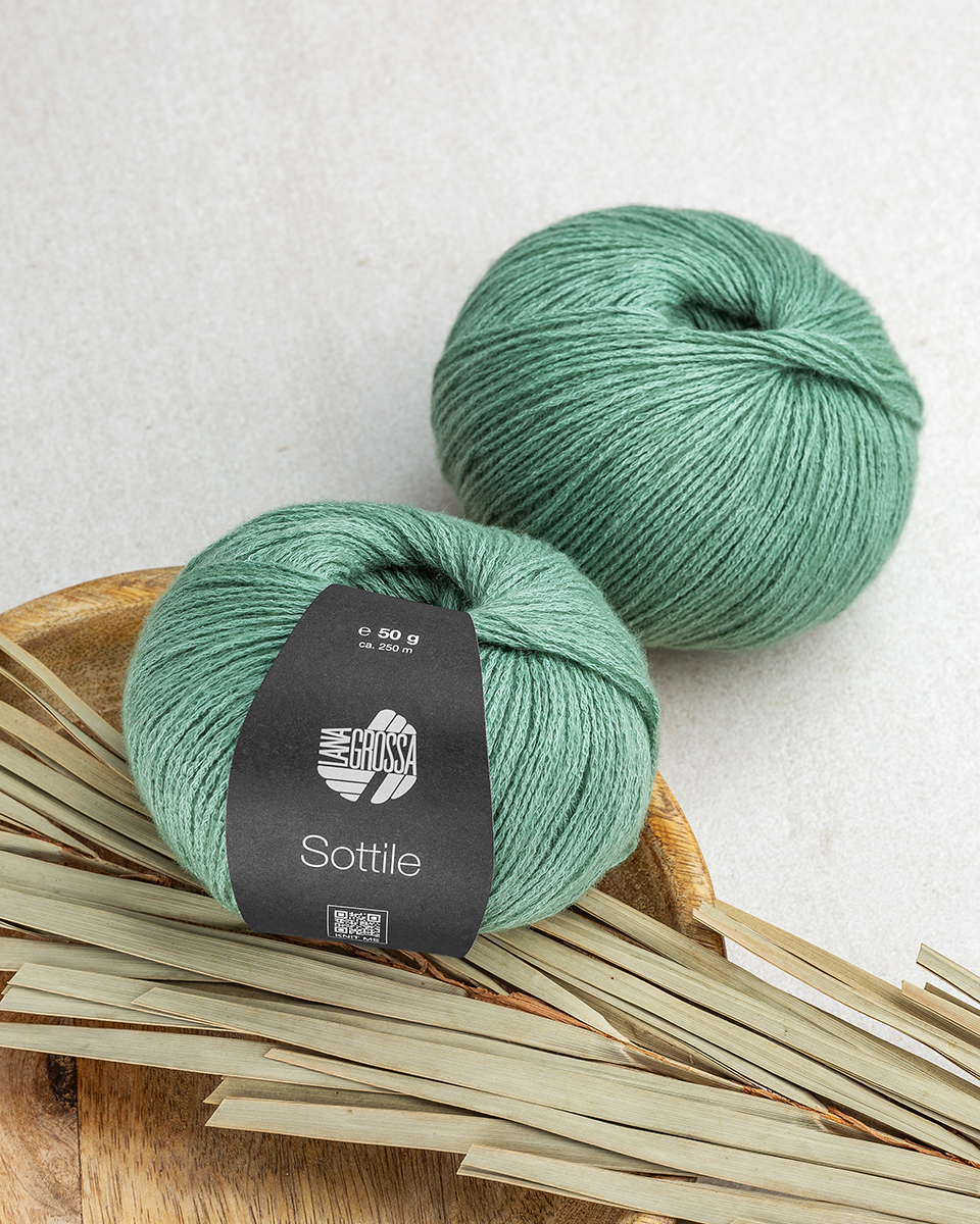 Sottile is een fijn, glad zomergaren gemaakt van een hoogwaardige katoenmix. Het overtuigt door zijn koele grip, een gelijkmatig stekenbeeld en een natuurlijke, elegante uitstraling.